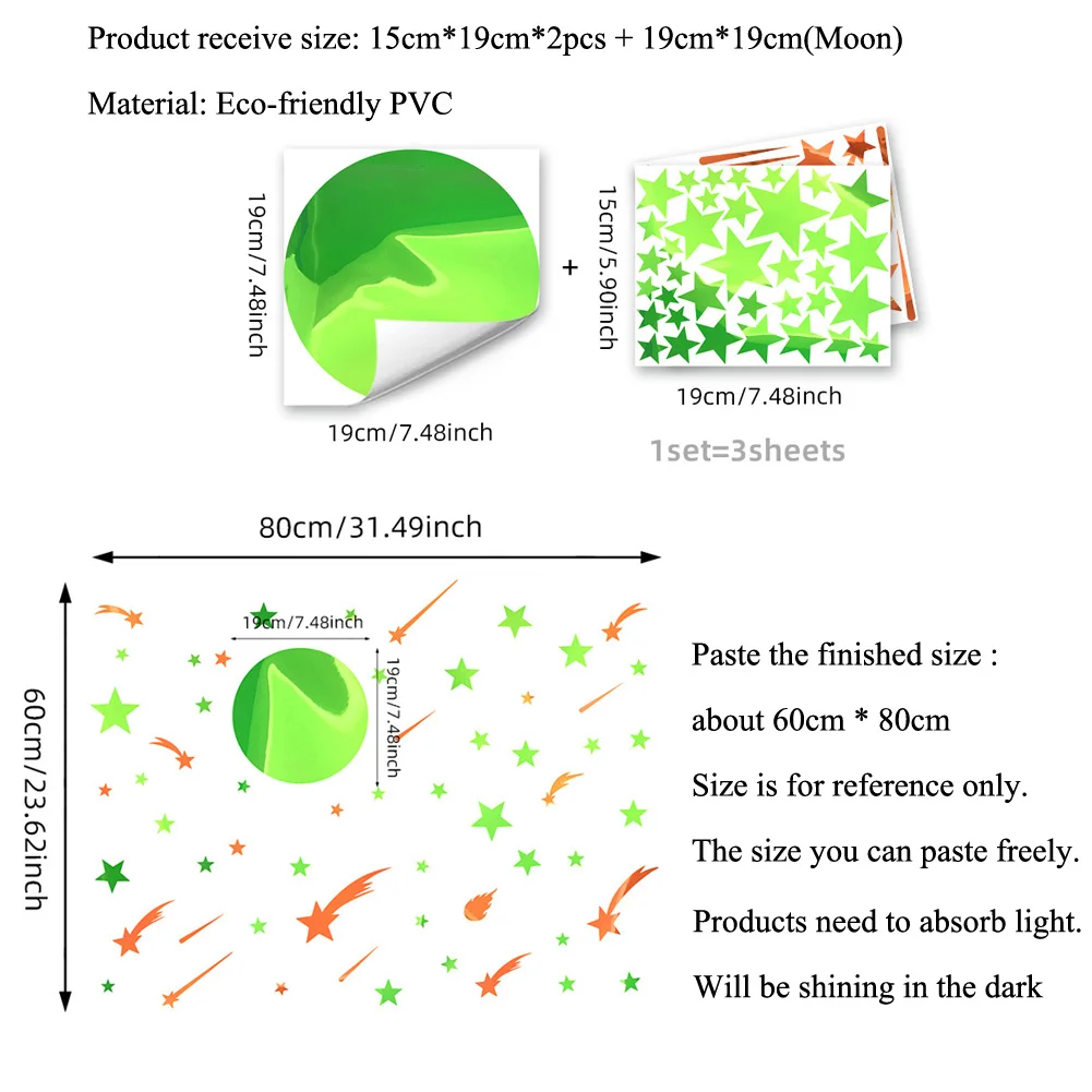 Product receive size:15cm*19cm*2pcs(Stars)+19cm*19cm(Moon)