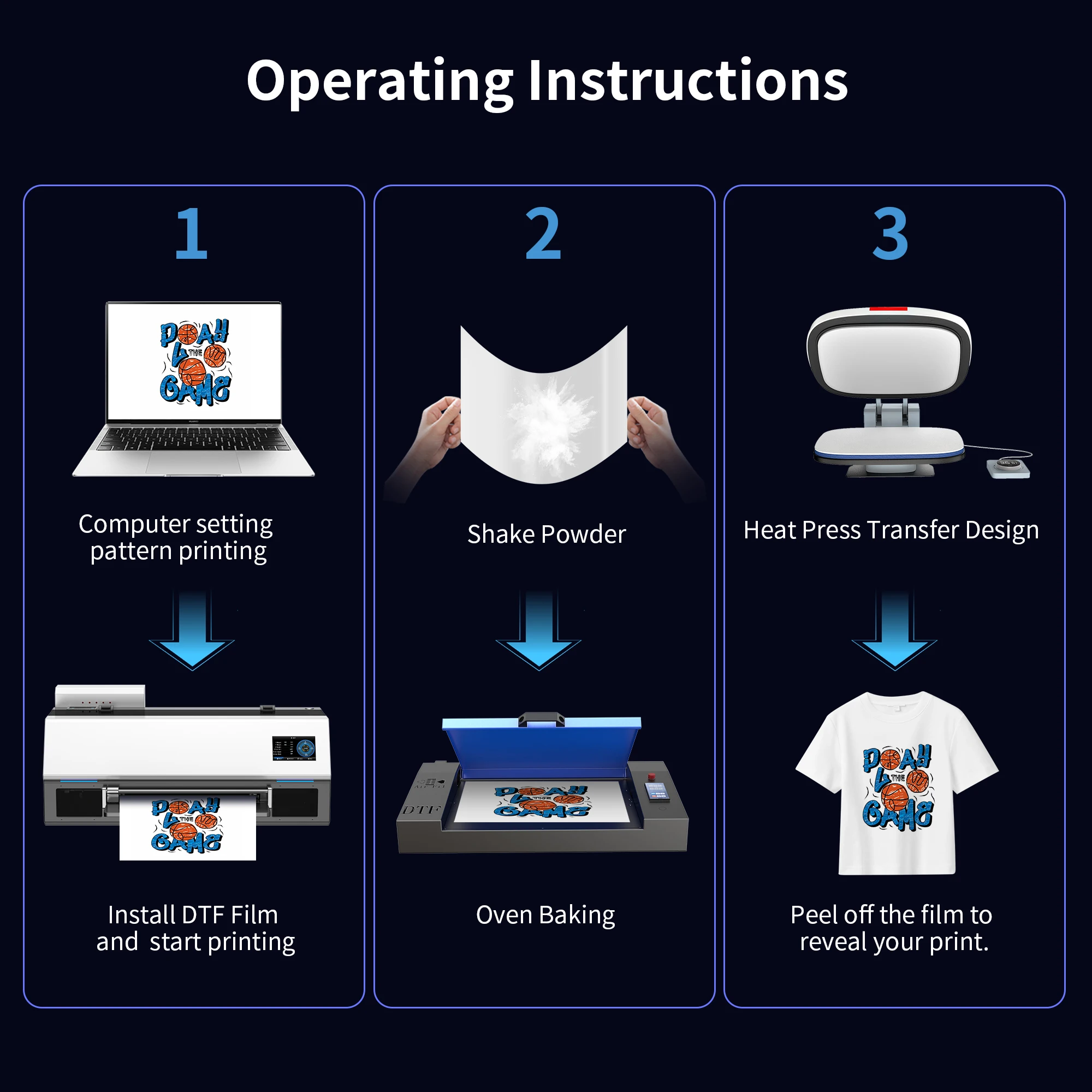 4.heat press machine 150℃ 8 Seconds,Tear off the PET film