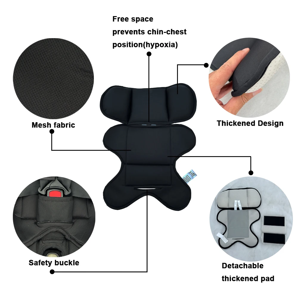 3. (Head and body support): This product adopts a thickened and non slip design.A detachable thickened cushion is added behind the seat cushion to provide better support for the baby’s (especially newborns) head and body. By adjusting the thickened cushion of the seat cushion, it can be suitable for different growth stages of the baby, which is more conducive to the baby’s growth and development.