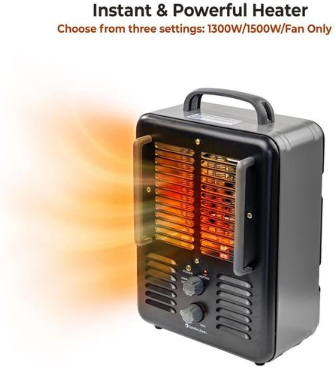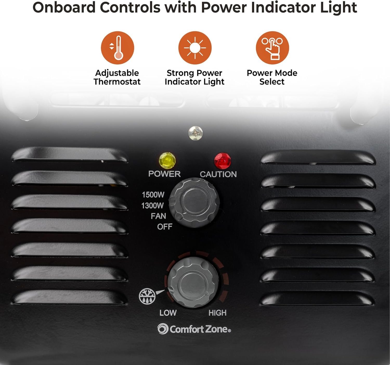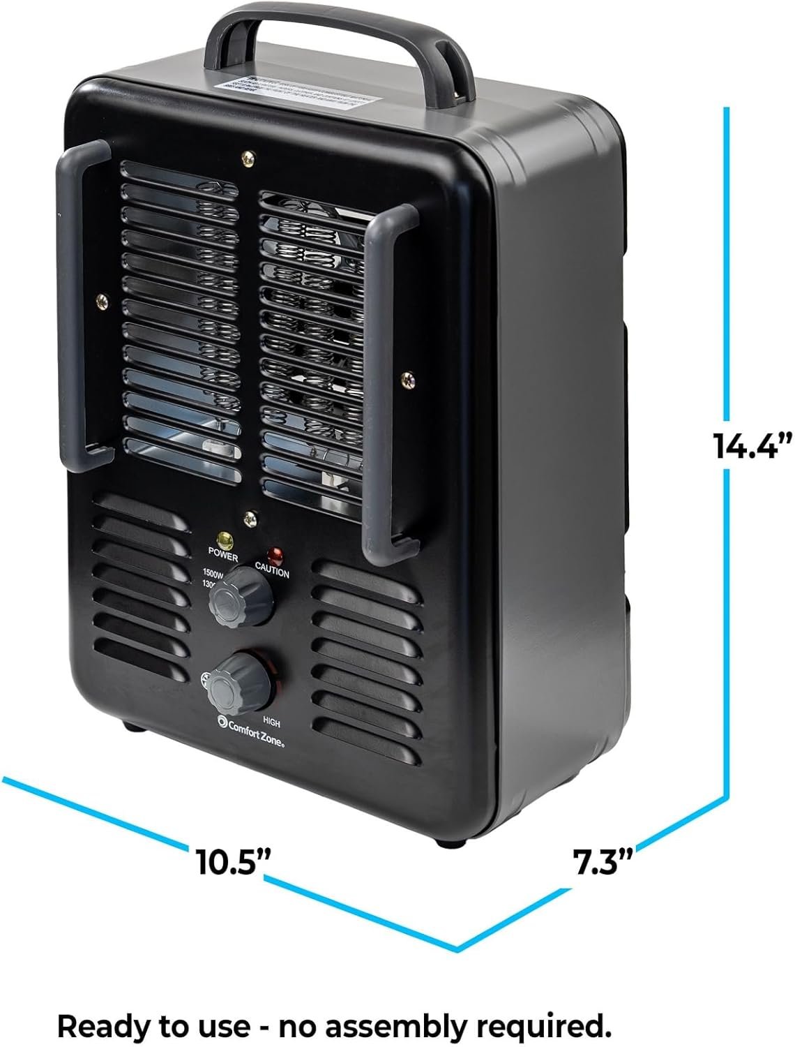 Comfort Zone Electric Portable Milkhouse Style Utility Space Heater with Adjustable Thermostat, Overheat Protection, and Safety Tip-Over Switch, Ideal for Garage or Greenhouse, 1,500W, CZ798BK