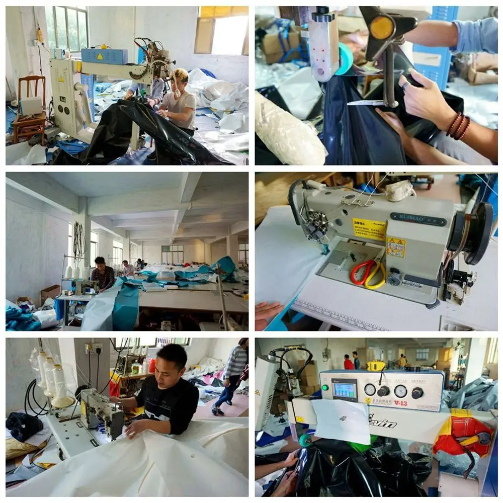 We double stitch everywhere, with fourfold stitching at bottom stress point. Double stitching inside and double stitching outside to make sure the inflatable are strong enough.