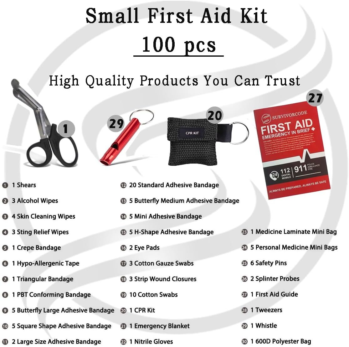100 High-Quality Emergency Essentials: This comprehensive 100-piece first aid kit includes a wide range of high-quality supplies to effectively care for minor wounds, cuts, scrapes, and burns.