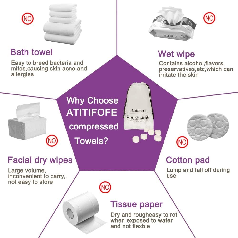 Atitifope Toilet Paper Tablets Compressed Coin Towels Travel Wipes Camping Cleaning Cloths