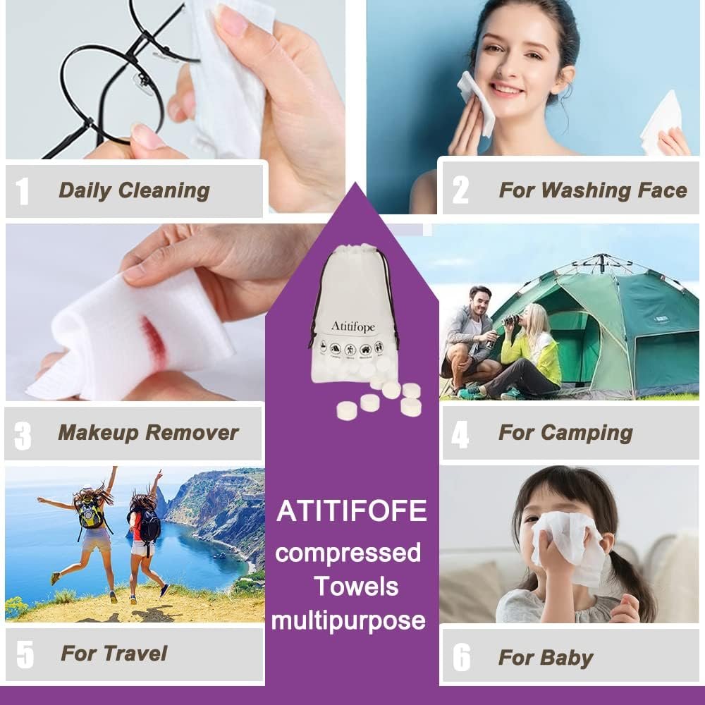 A:Yes, the Atitifope Compressed Facial Towels are excellent for camping! These compressed towels expand to 7.9″ x 7.9″ when water is added and offer several camping-friendly features: