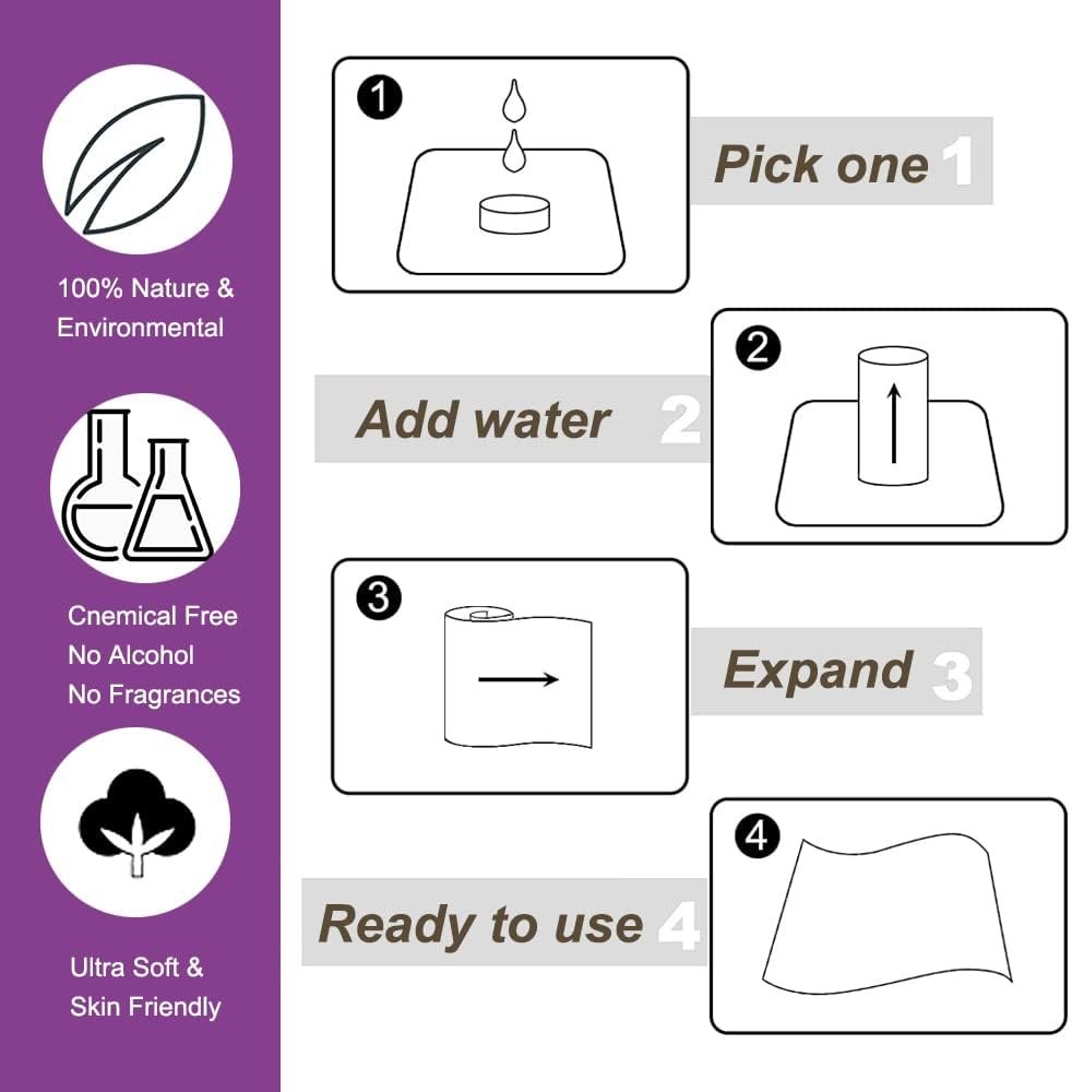 【Hygienic and Convenient, Ready to Use】- Simply add a small amount of water when in use, and it will quickly expand into a fully sized towel, offering fast and hassle-free convenience.