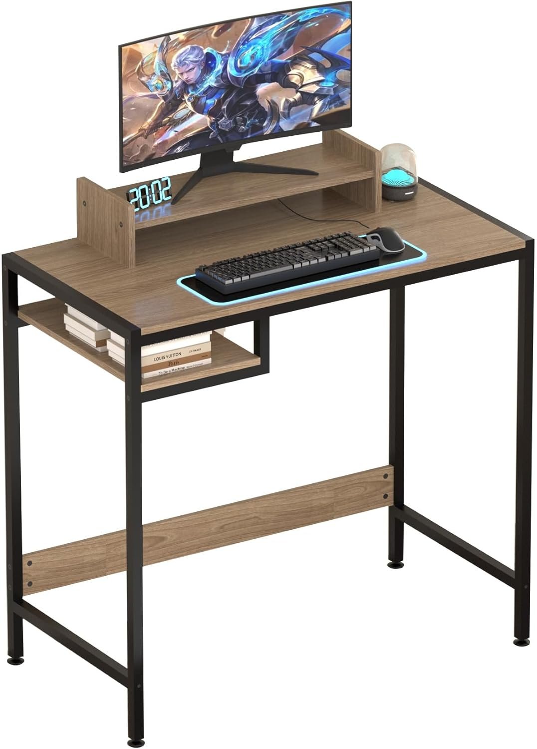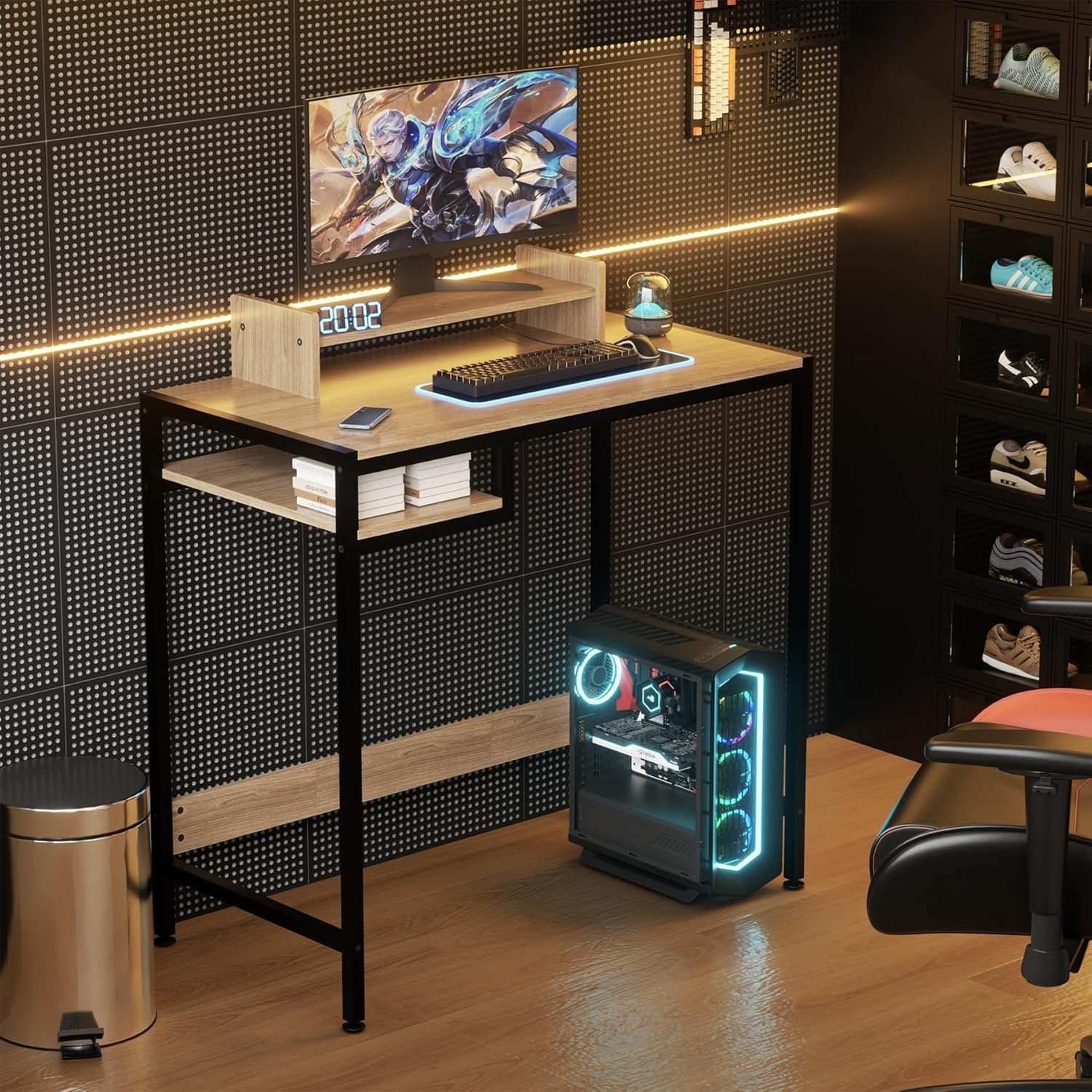 Computer Desk – 32 Inch Home Office Desk with Storage, Gaming Desk with Monitor Stand, Modern Simple Study Table, Adjustable Storage Space, Grey