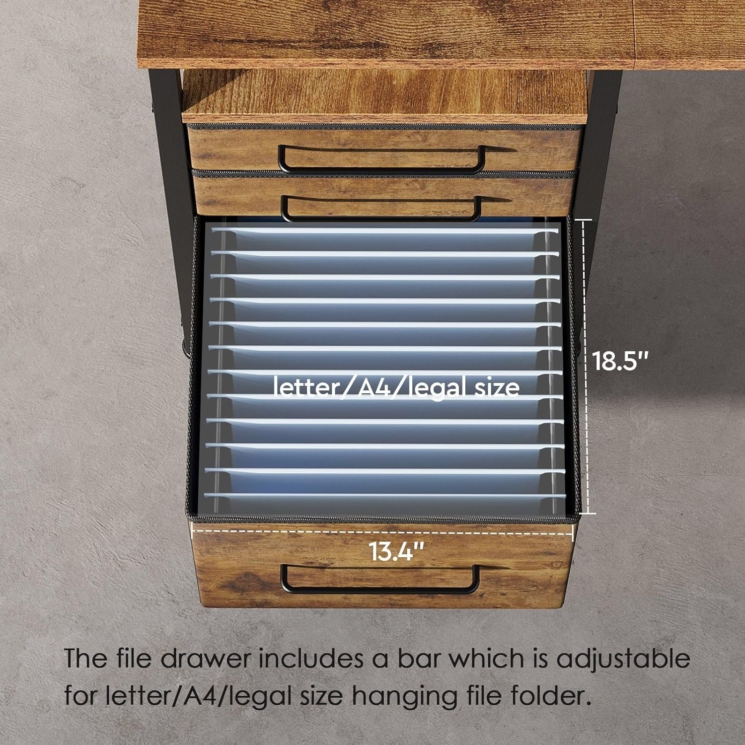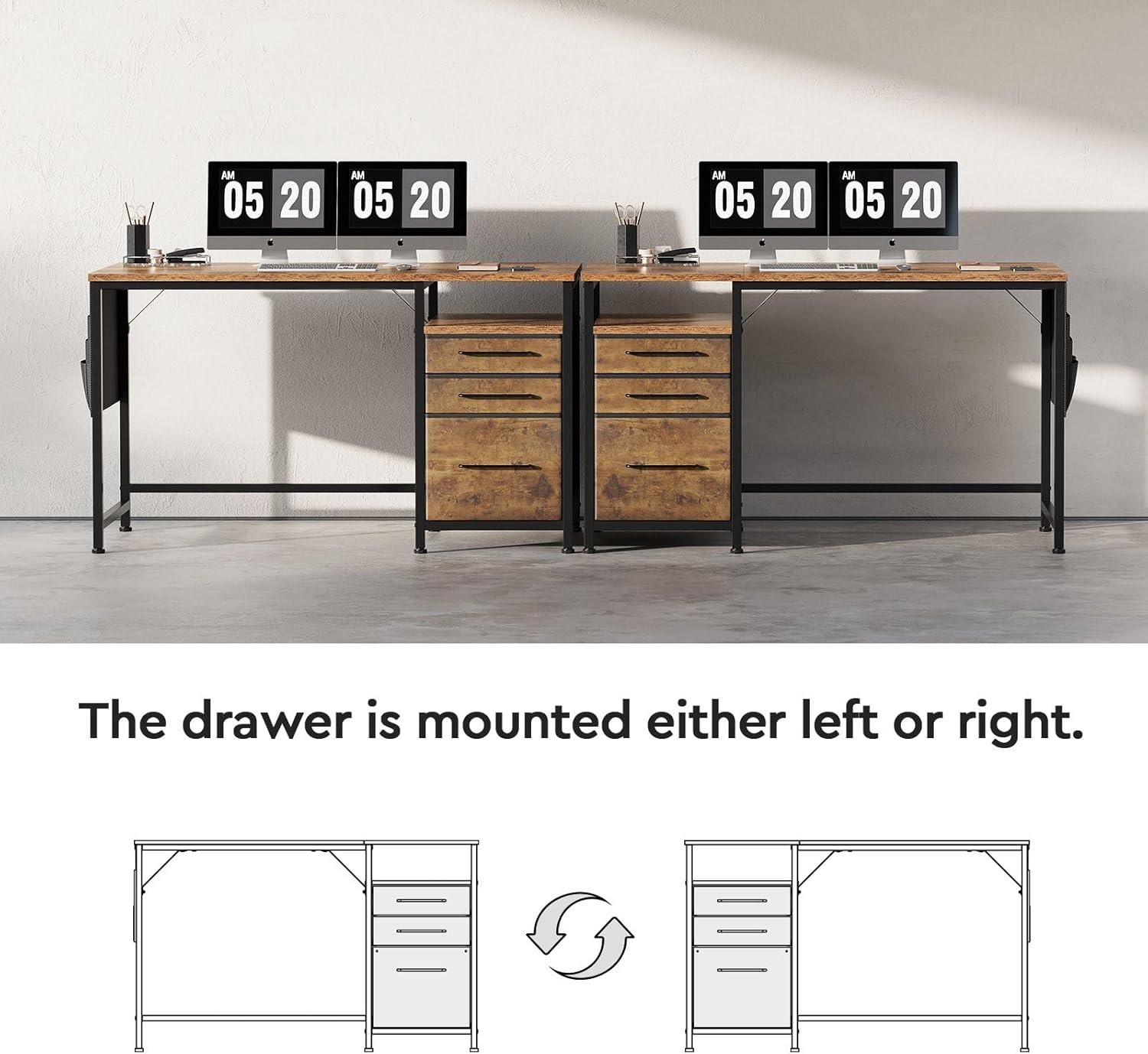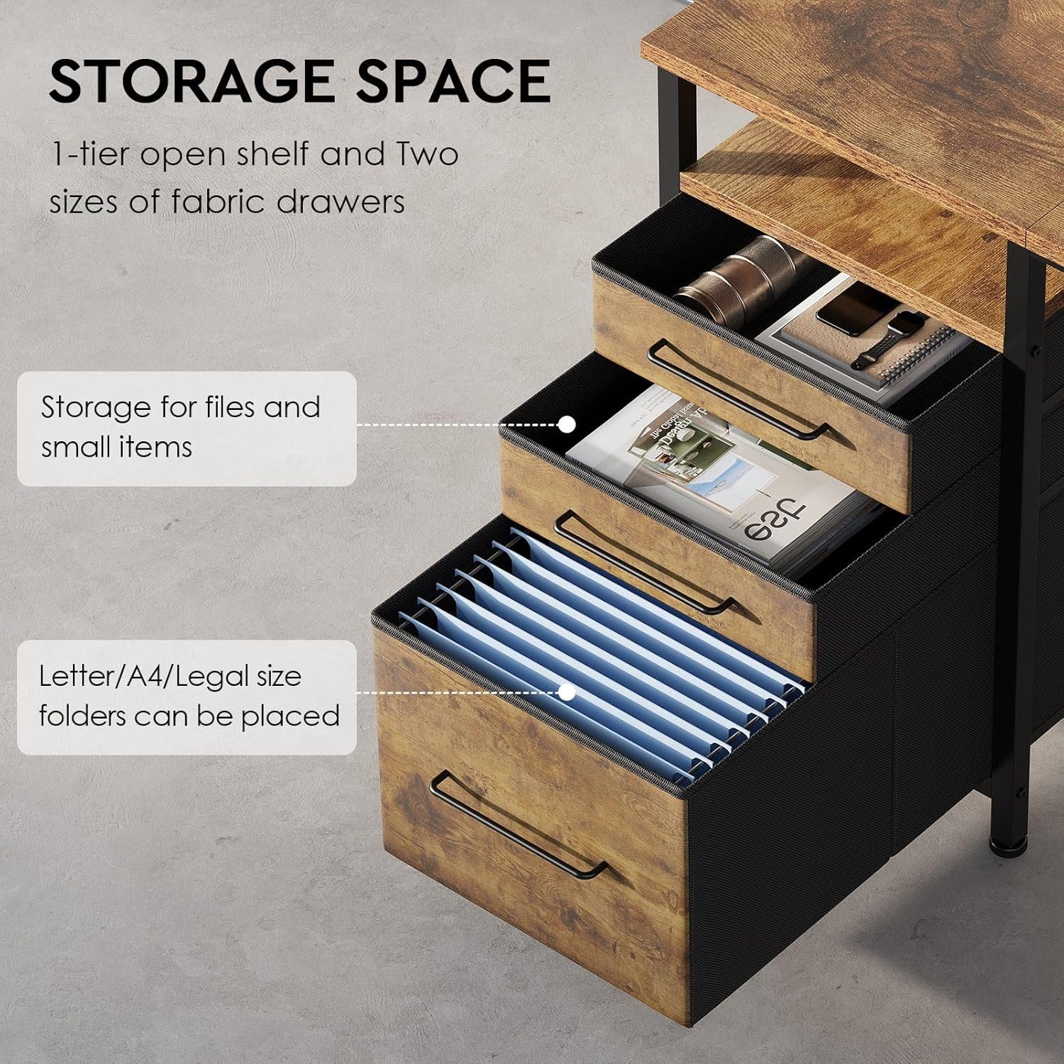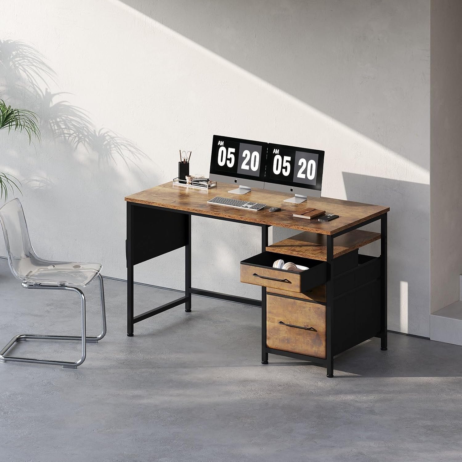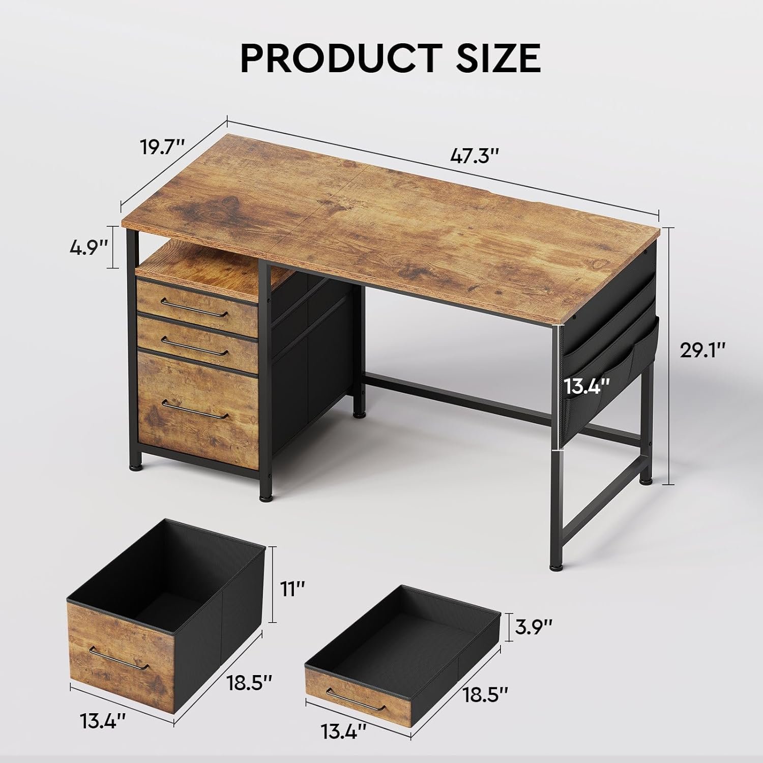 Computer Desk with Drawers, 47 inch Desk with 2 Drawers and Shelves, Office Desk with Storage, Desk with Storage Bag, Home Office desks with Drawers, Metal Frame for PC Laptop, Rustic Brown2