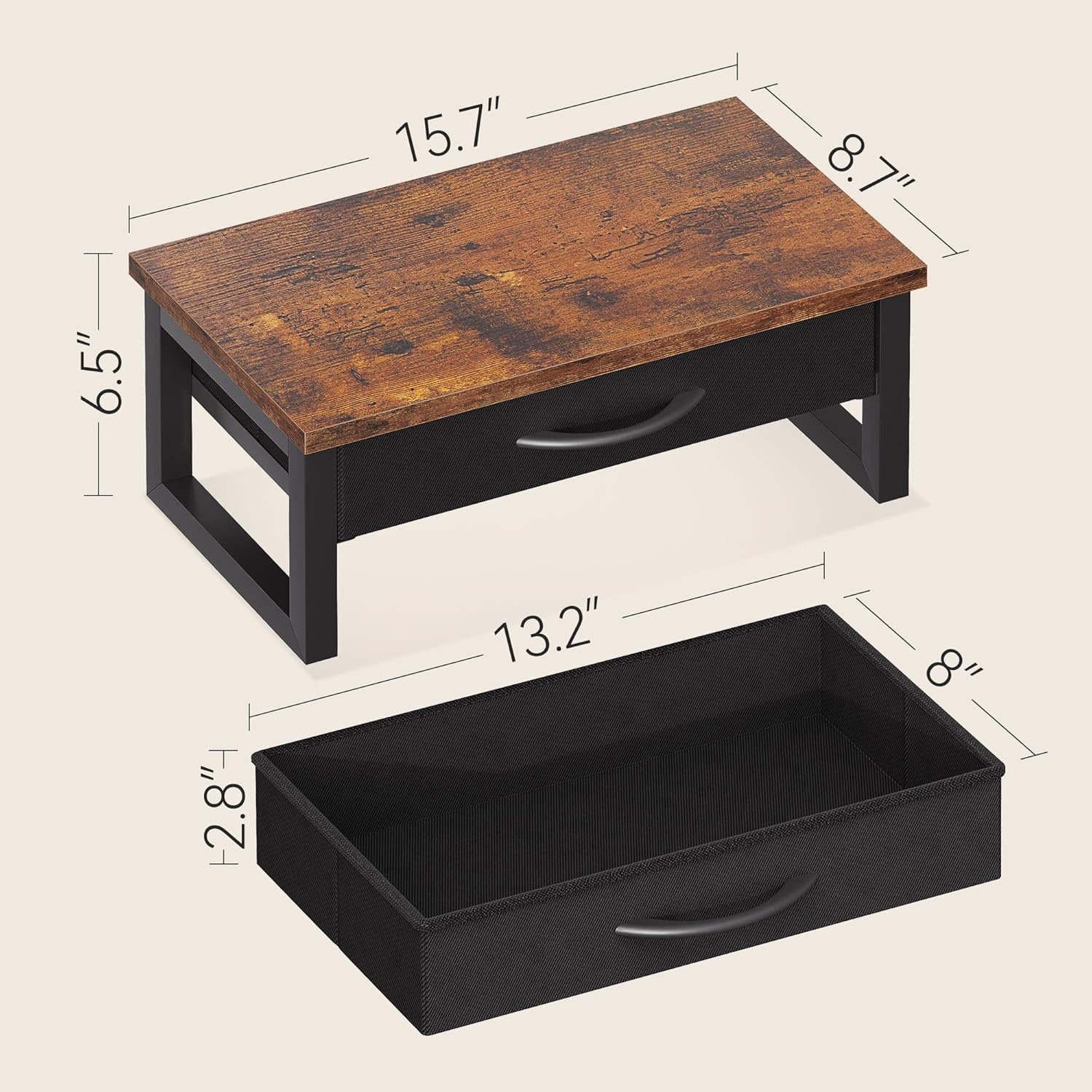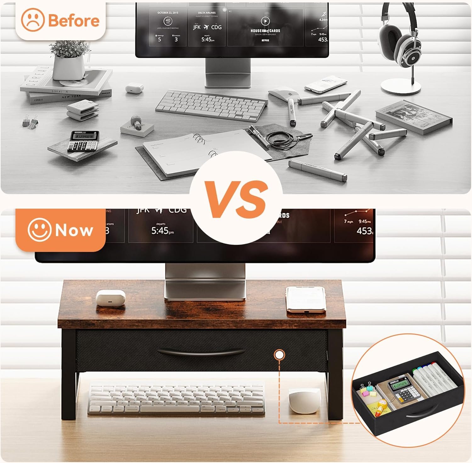 Keep Your Desk Tidy (with Cloth Drawer): This computer monitor stand provides a large storage space; Desktop, drawer, bottom, all can be used to store items; Placing small items in drawer will make the entire desktop look more tidy