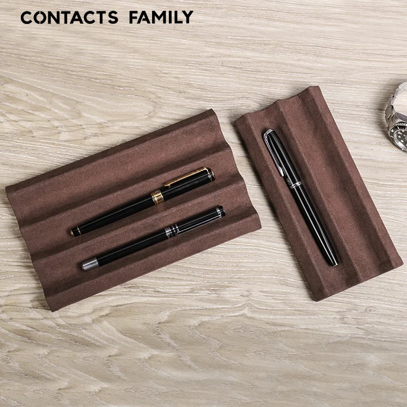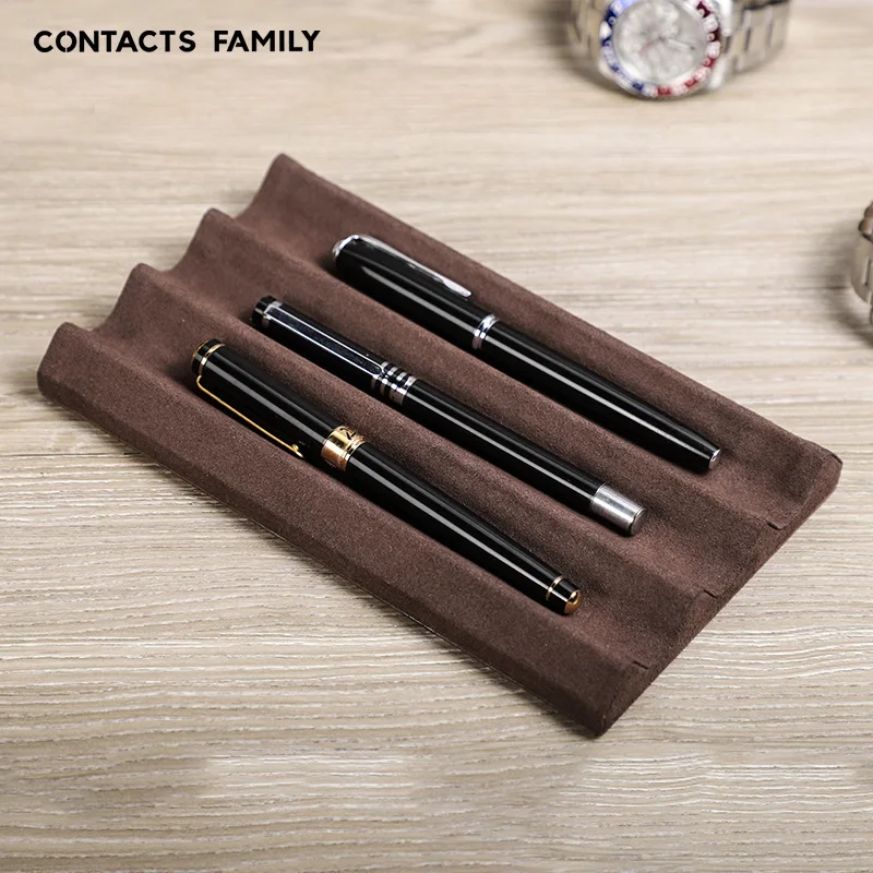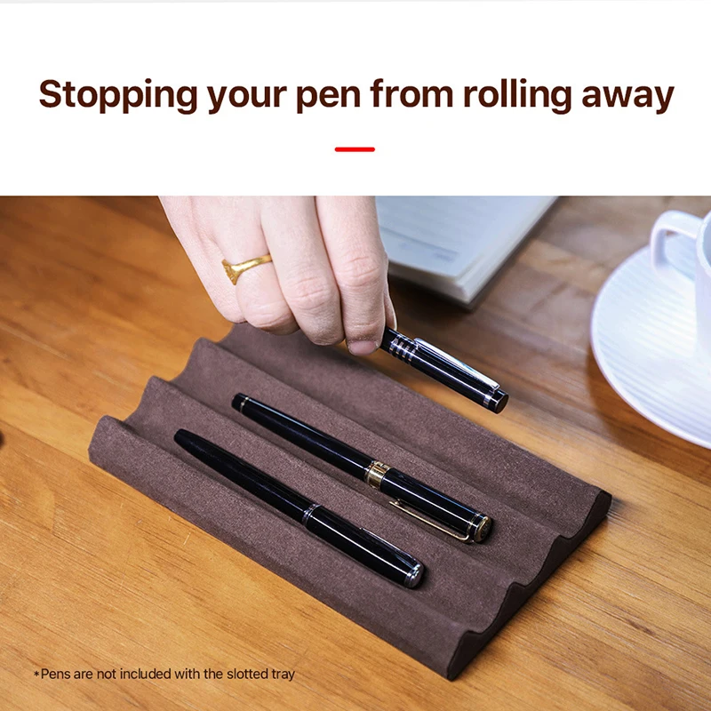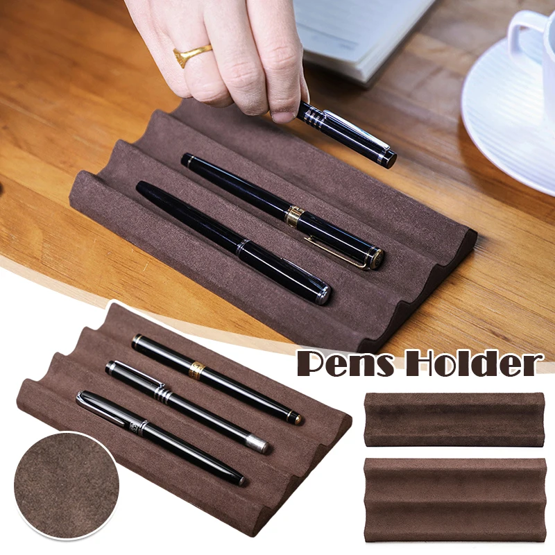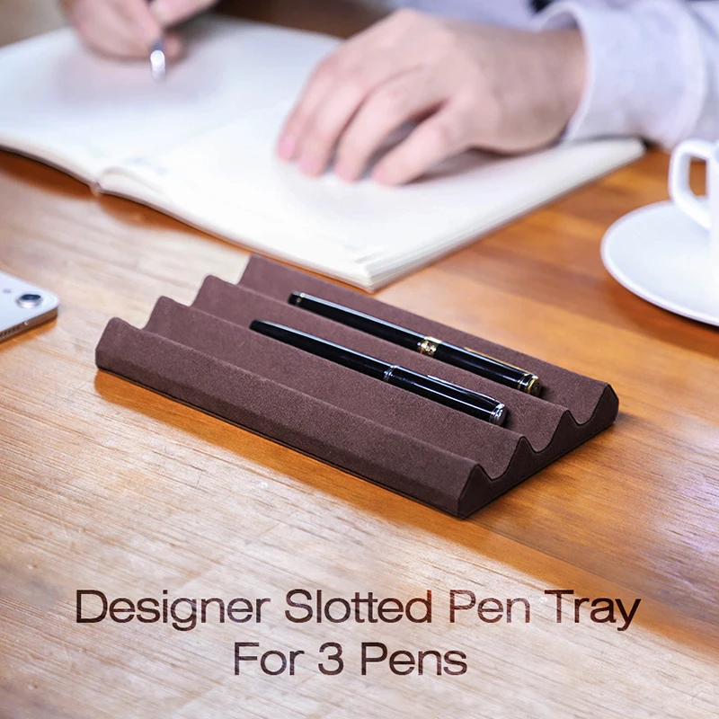Contact’s Family Luxury Leather Pen Tray 1/2/3 Slots Pens Holder Display Pen Stand Microfiber Desktop Organizer Home Office Use
