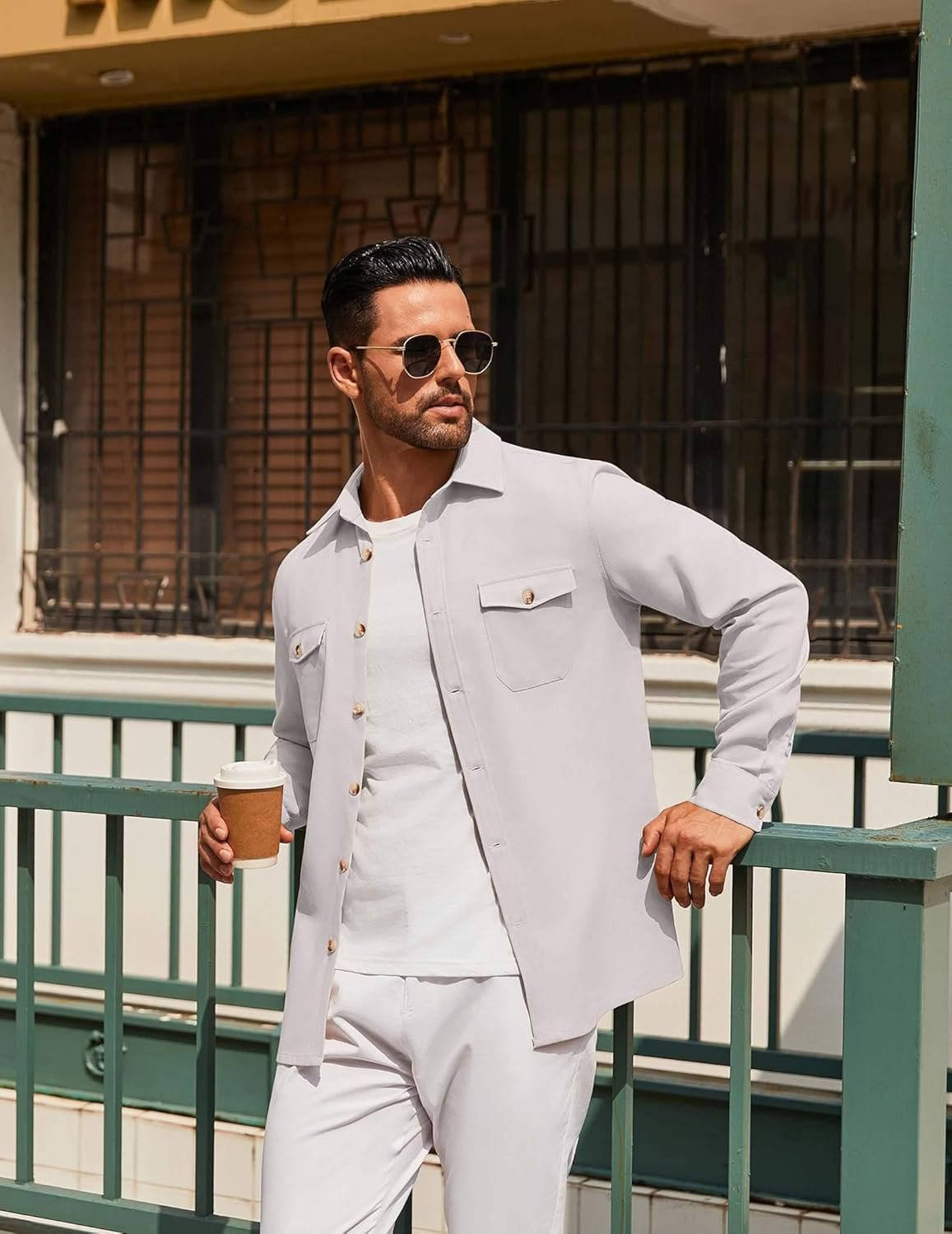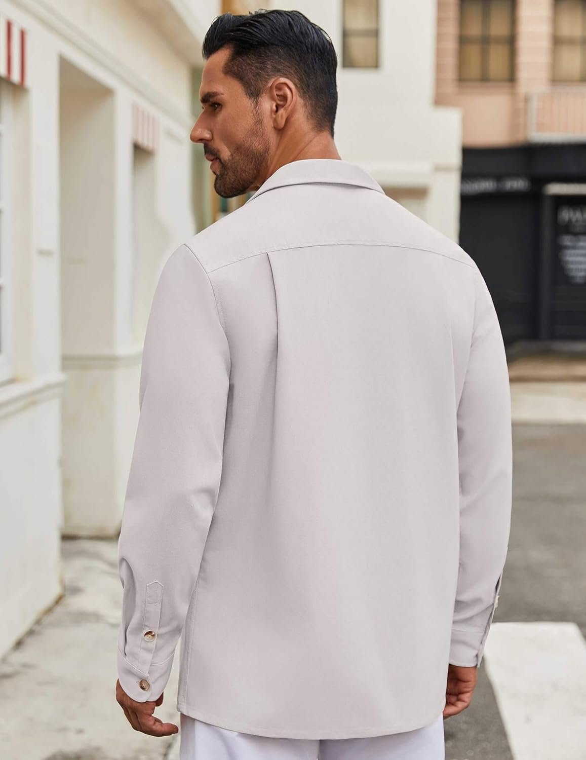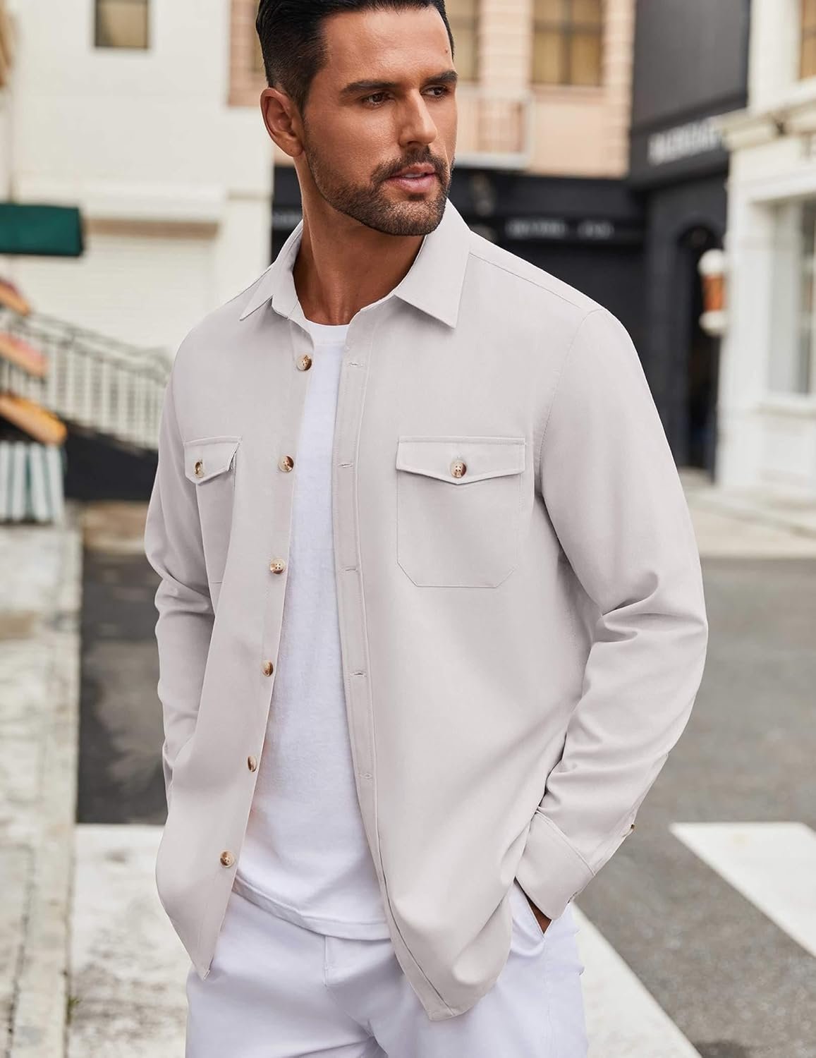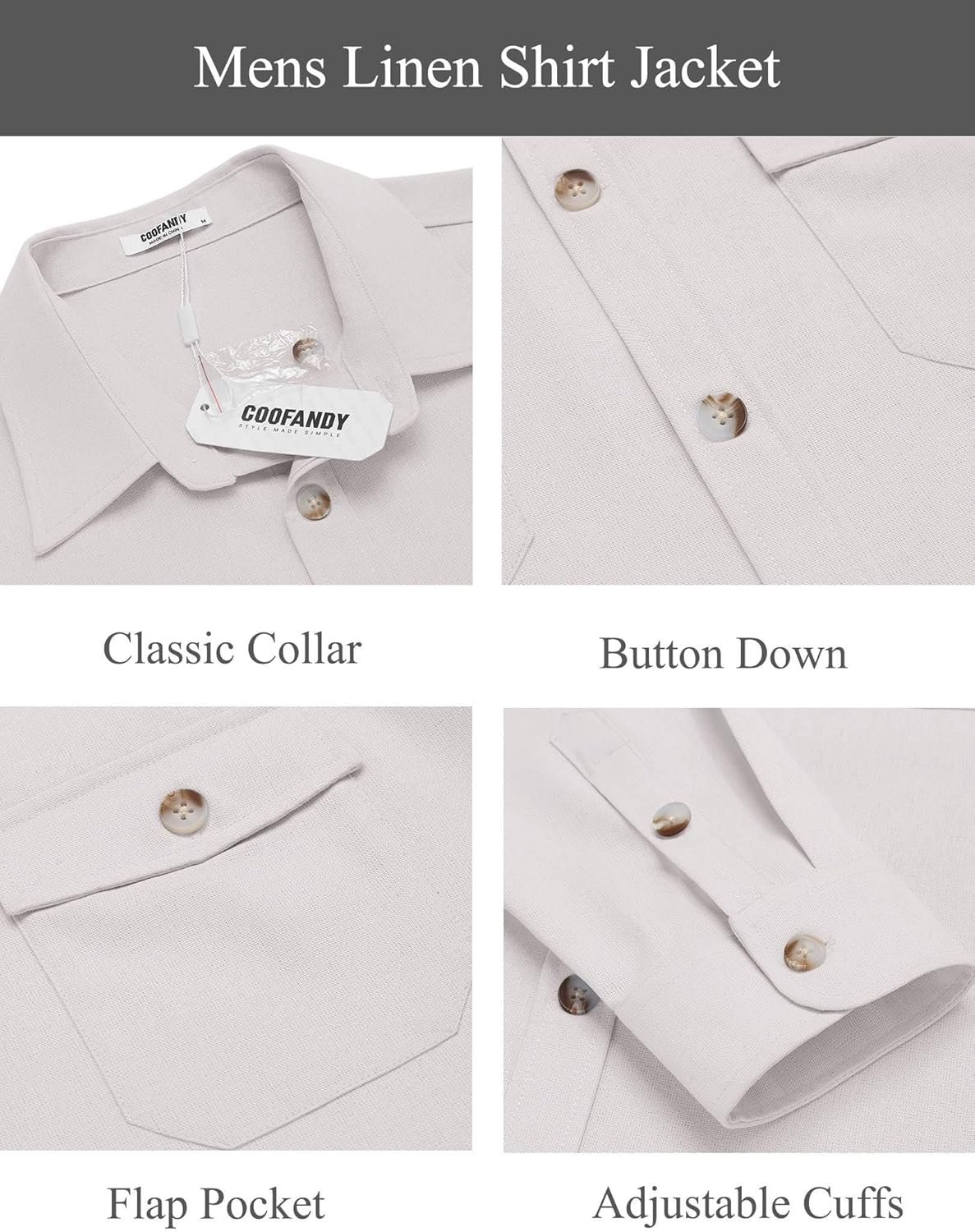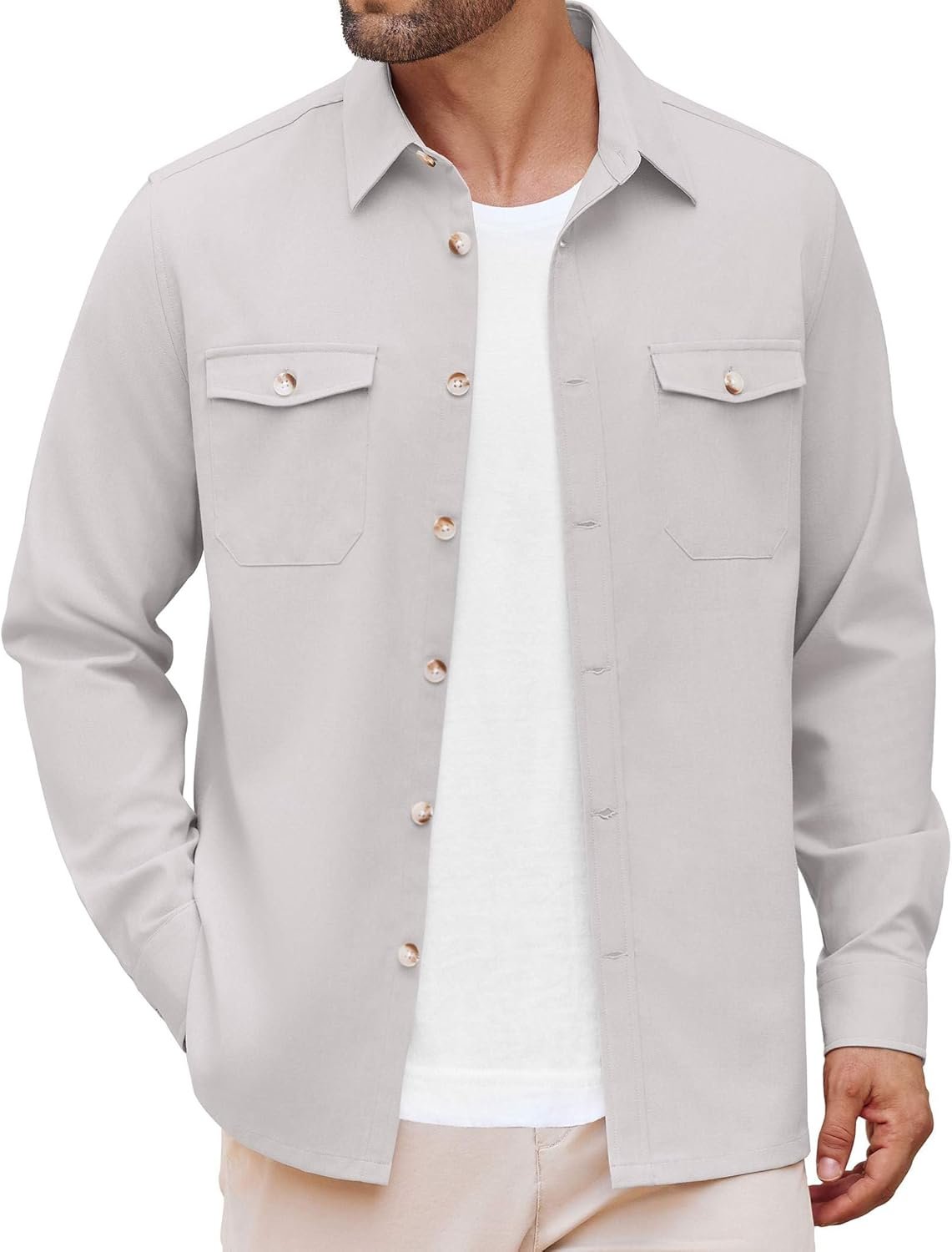 COOFANDY Men’s Casual Shirt Jacket Linen Button Down Shirt Long Sleeve Lightweight Shacket with Pockets