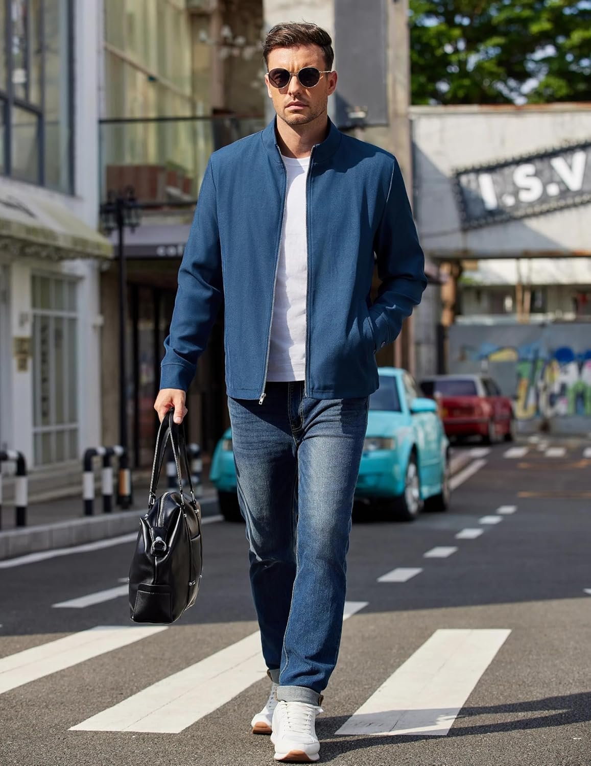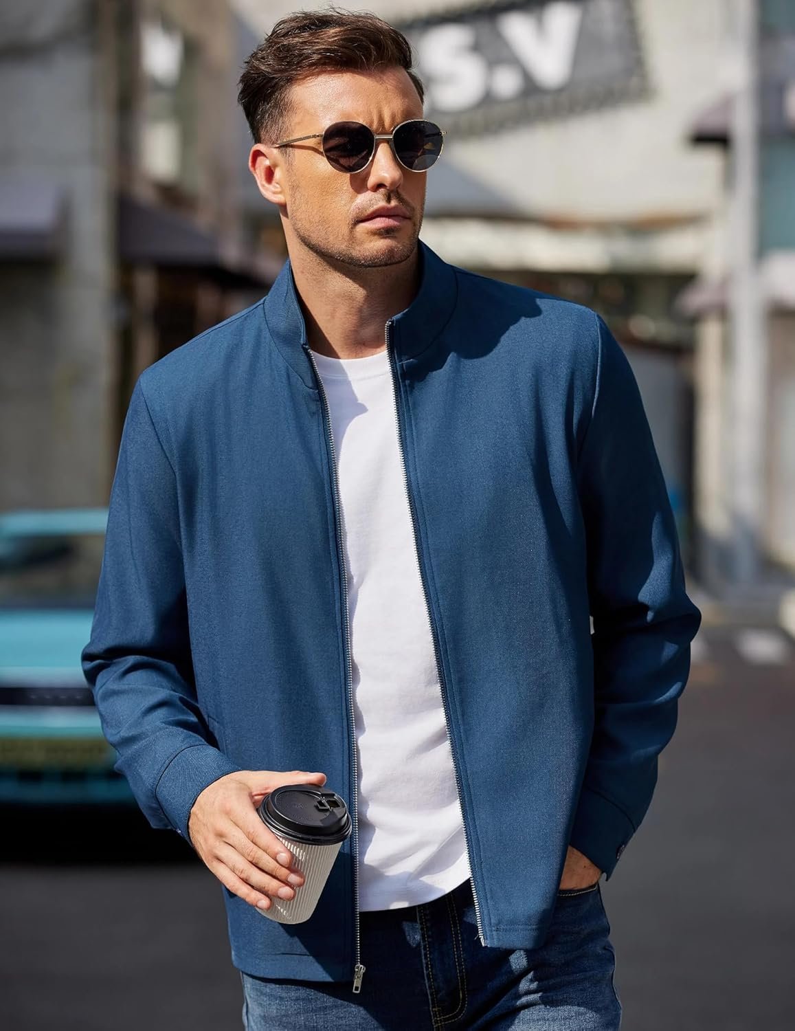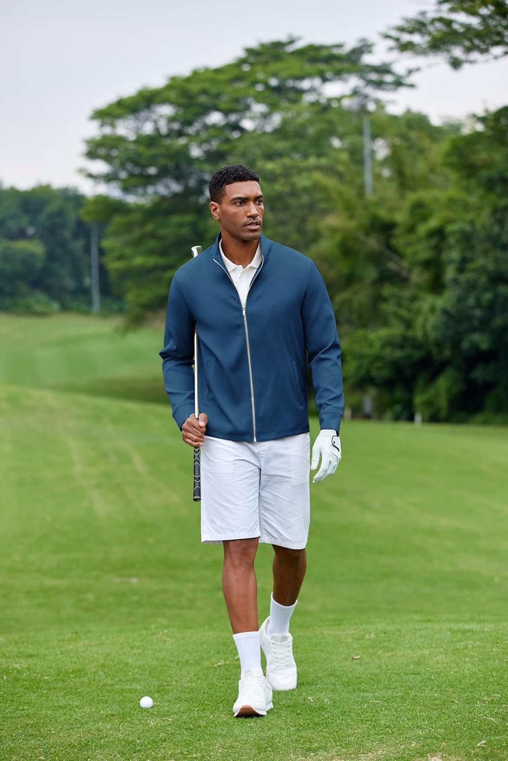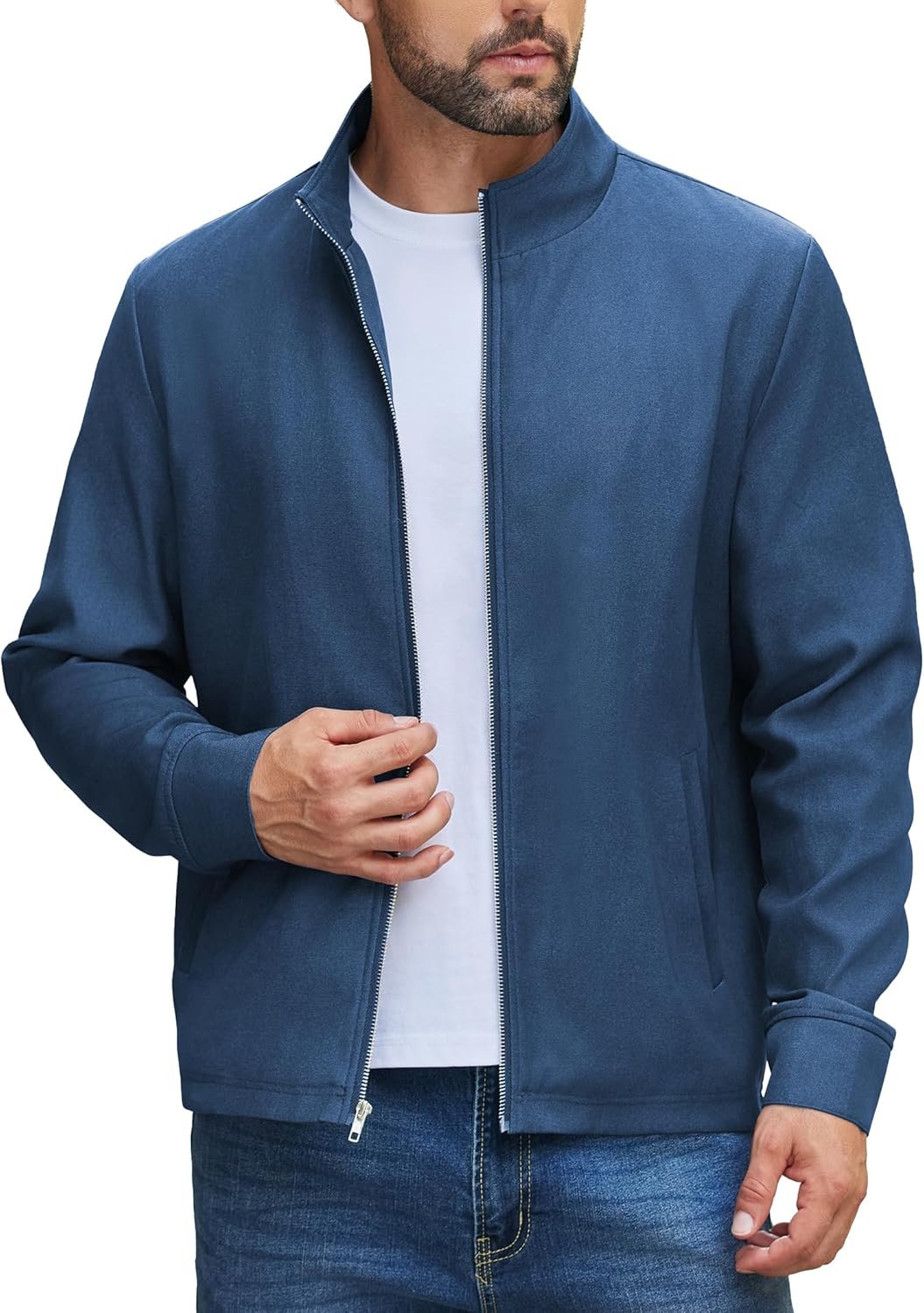 COOFANDY Men’s Lightweight Zip Up Jacket Stand Collar Jacket Casual Light Golf Jackets with Pocket