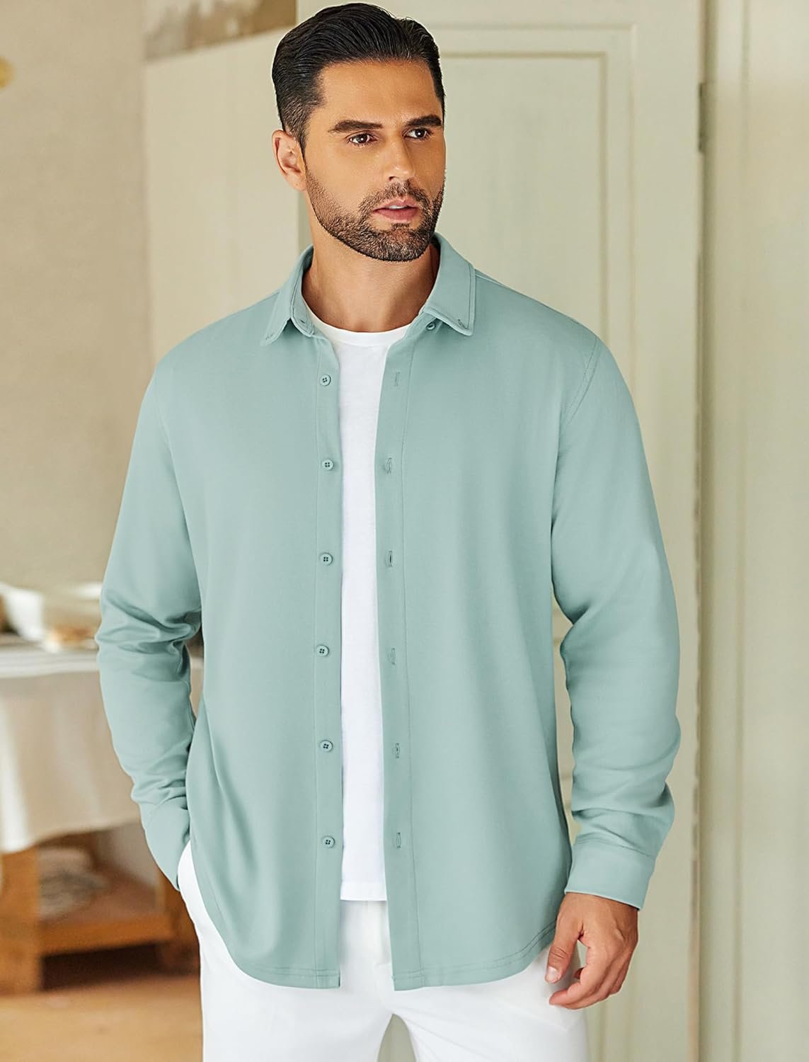 COOFANDY Mens Long Sleeve Button Down Shirts Stretch Untucked Shirts Casual