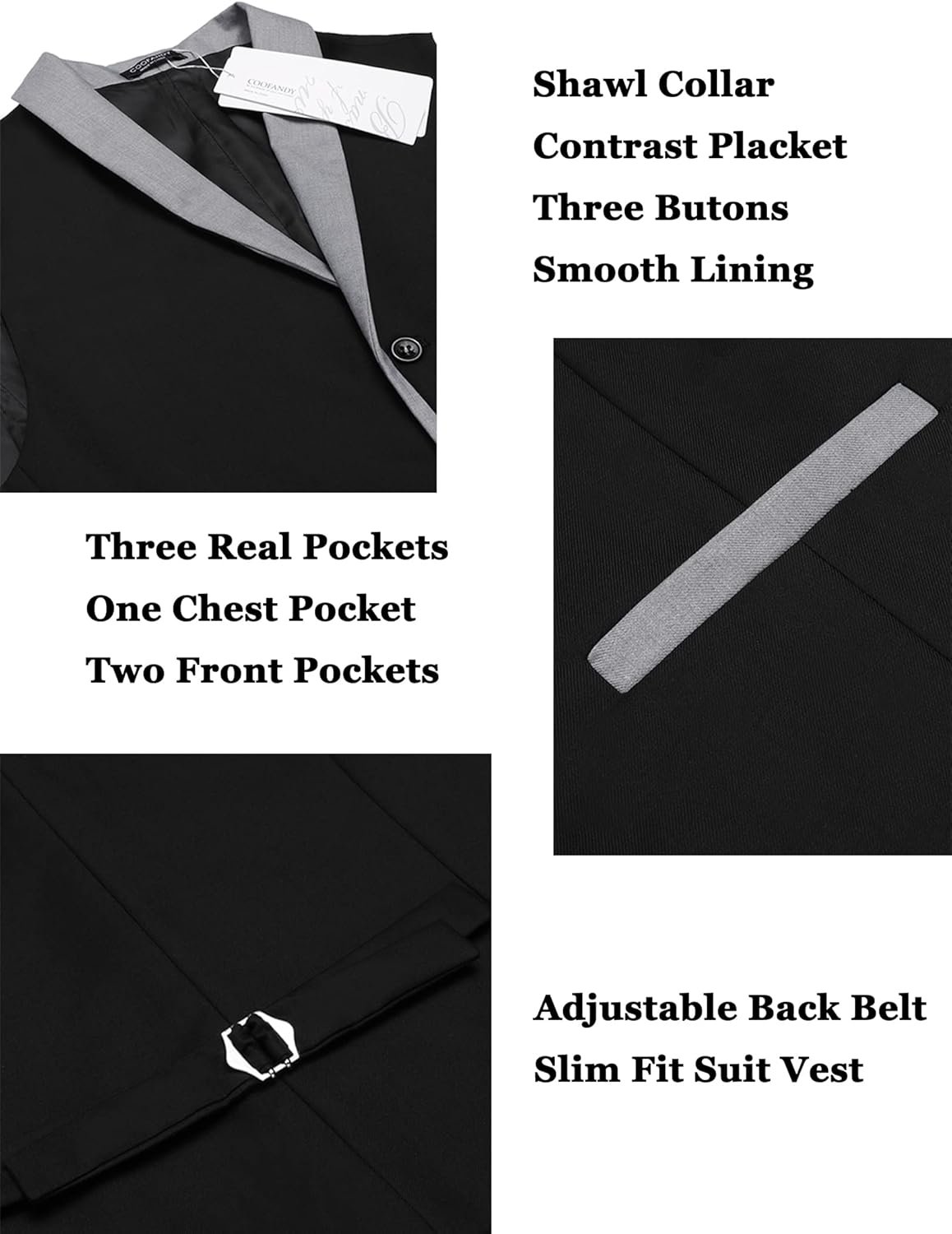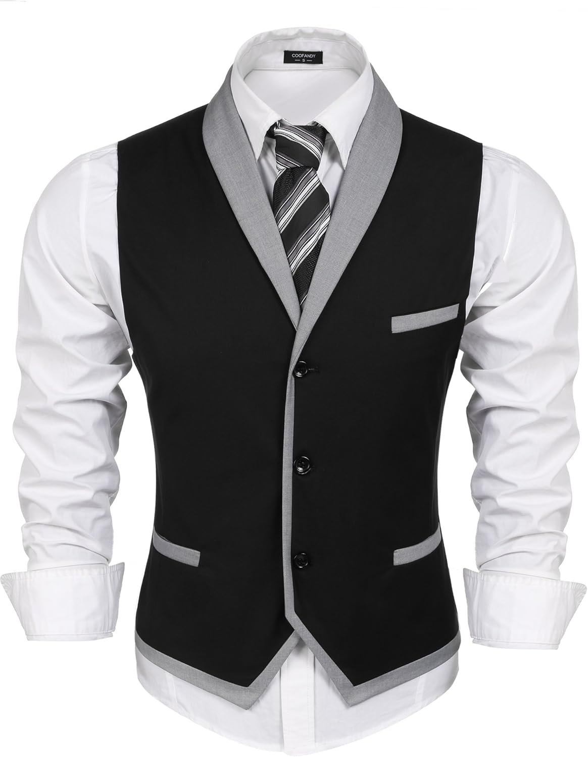 COOFANDY Men’s Suit Vest Slim Fit Formal Business Dress Vest Casual Wedding Waistcoat