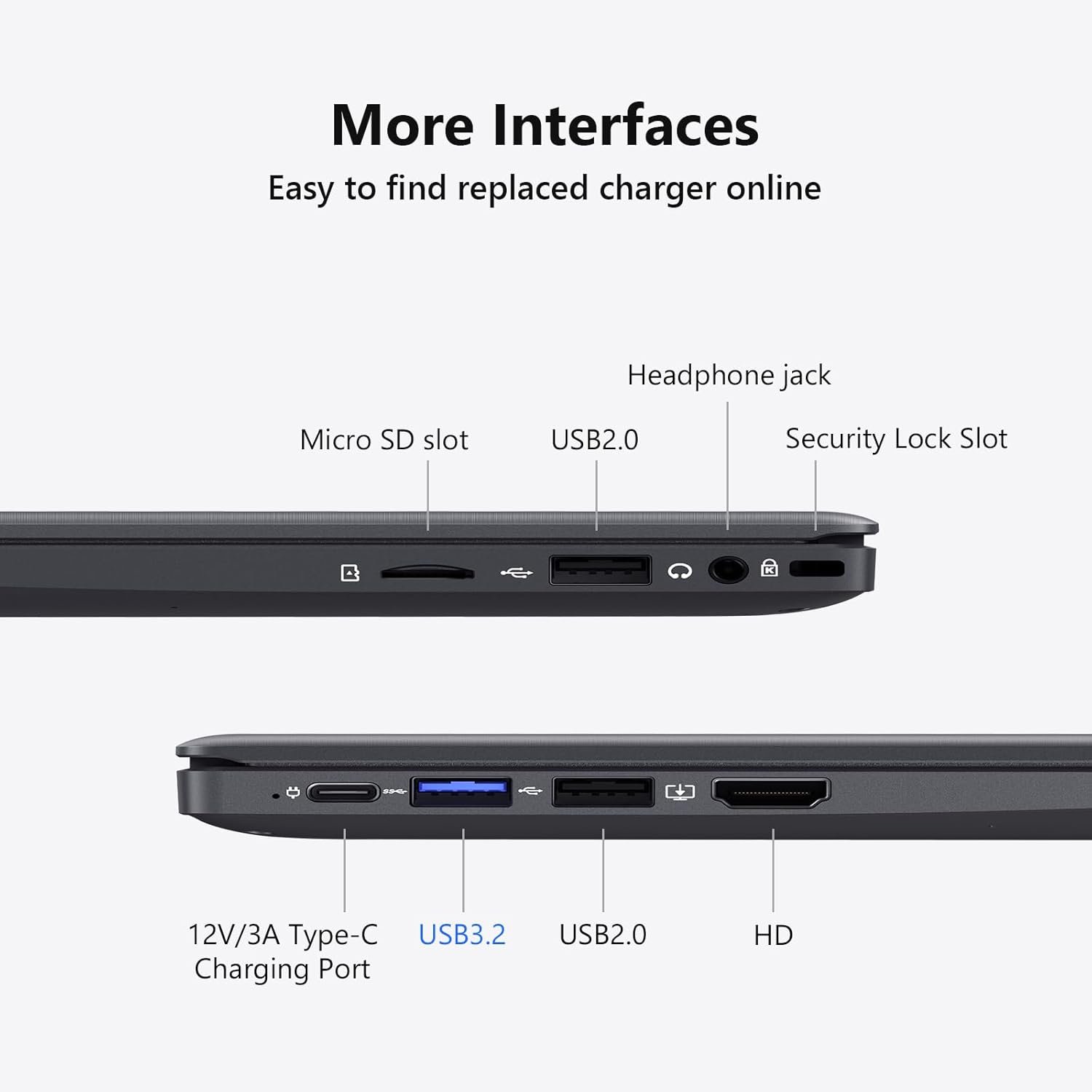 【Anti-glared Display and Faster Memory Speed】HealBook adopts a 14.1inch HD(1366*768) high-resolution screen, which can provide better viewing angles, color reproduction, color accuracy and consistency, also protects eyesight. And it equips 8GB RAM, 128GB SSD plus up to 256GB MicroTF interface.