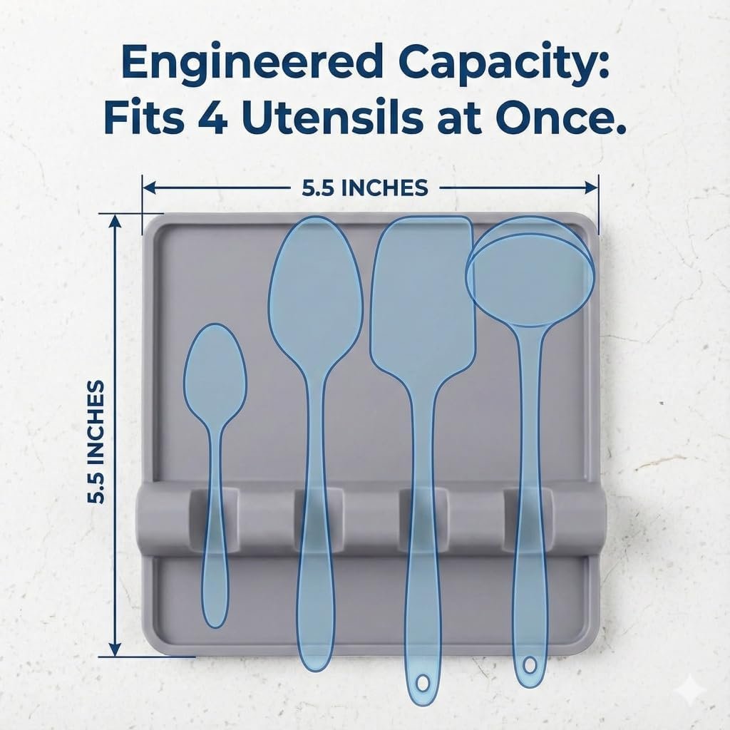 MULTIPLE UTENSIL TYPES: Our kitchen counter spoon rest is the ideal choice for not only spoons, but tongs, ladles, spatulas, and more. A wonderful alternative to wasting paper plates or paper towels, this utensil rest is simply perfect for keeping everything separated when working with different ingredients. Each spoon rest can hold up to four cooking utensils at once- there’s a spot for every piece of cookware you need.