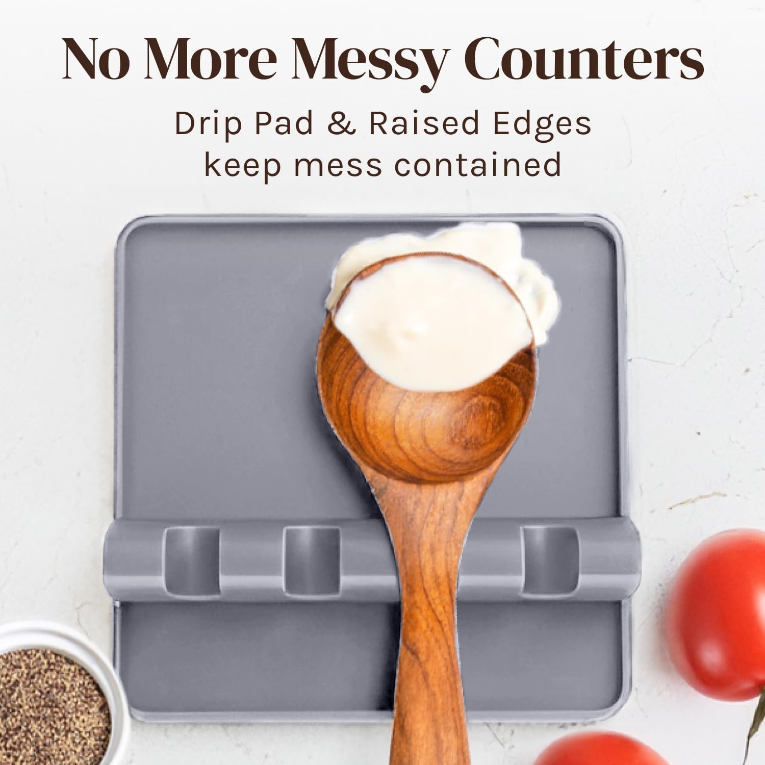 RAISED EDGES: Each kitchen spoon holder is ergonomically designed to keep your kitchen counter drip-free and tidy. Raised edges prevent any spillage so you can focus on cooking instead of cleaning.
