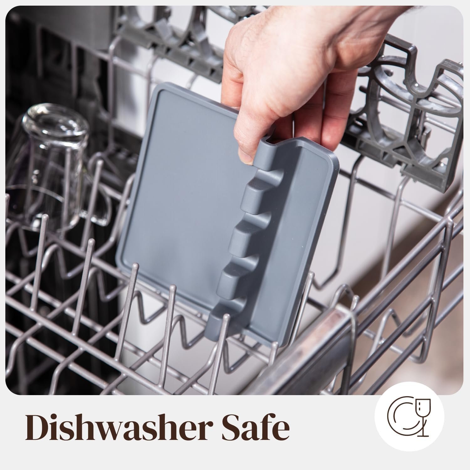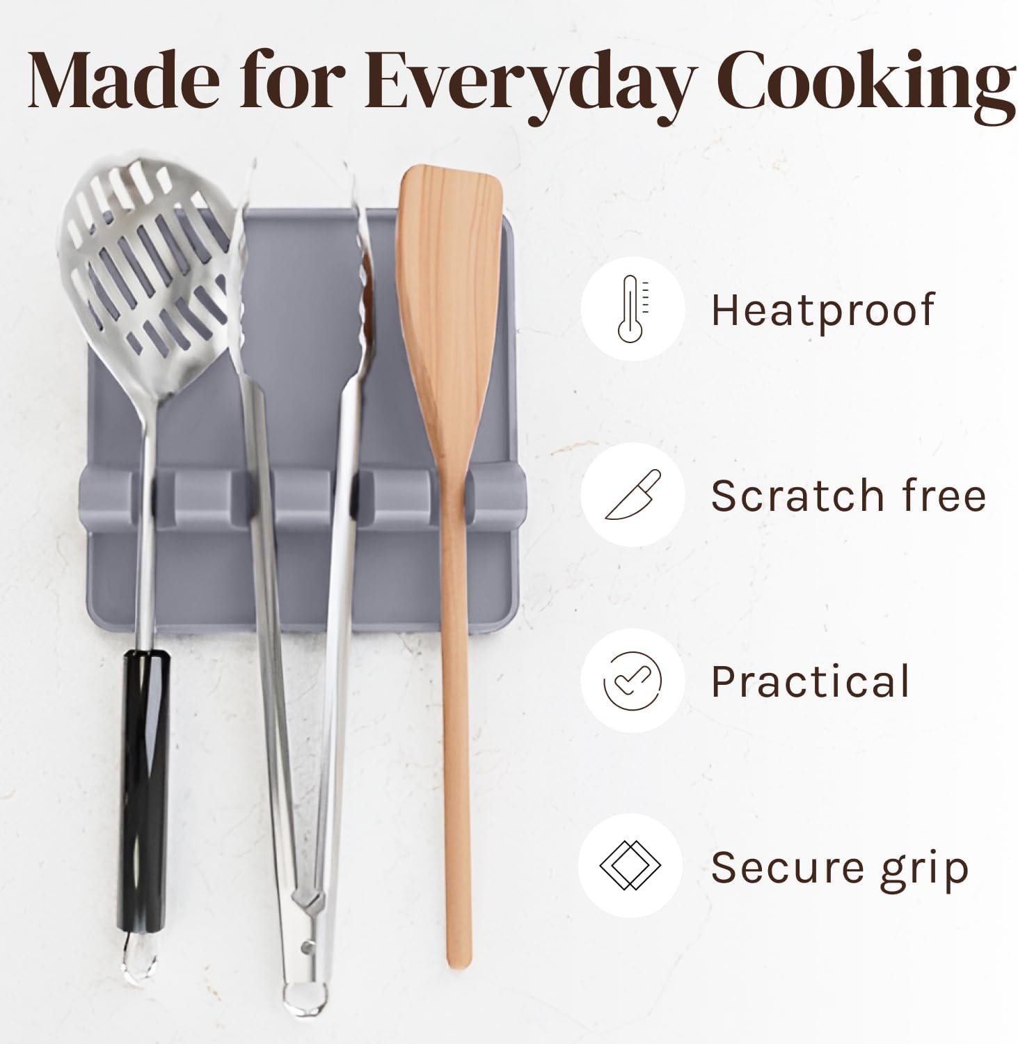 QUALITY SILICONE TO STAND THE TEST OF TIME: Made from a durable, dishwasher friendly, food grade silicone, our sturdy space friendly spoon rack is the ideal tool to keep counters neat and organized while cooking. The silicone material ensures that food washes off easily, making clean up a breeze with or without a dishwasher. The flexible material ensures that this kitchen spoon rest will hold up to heavy duty usage for years to come without shattering or cracking like most ceramic spoon rests.