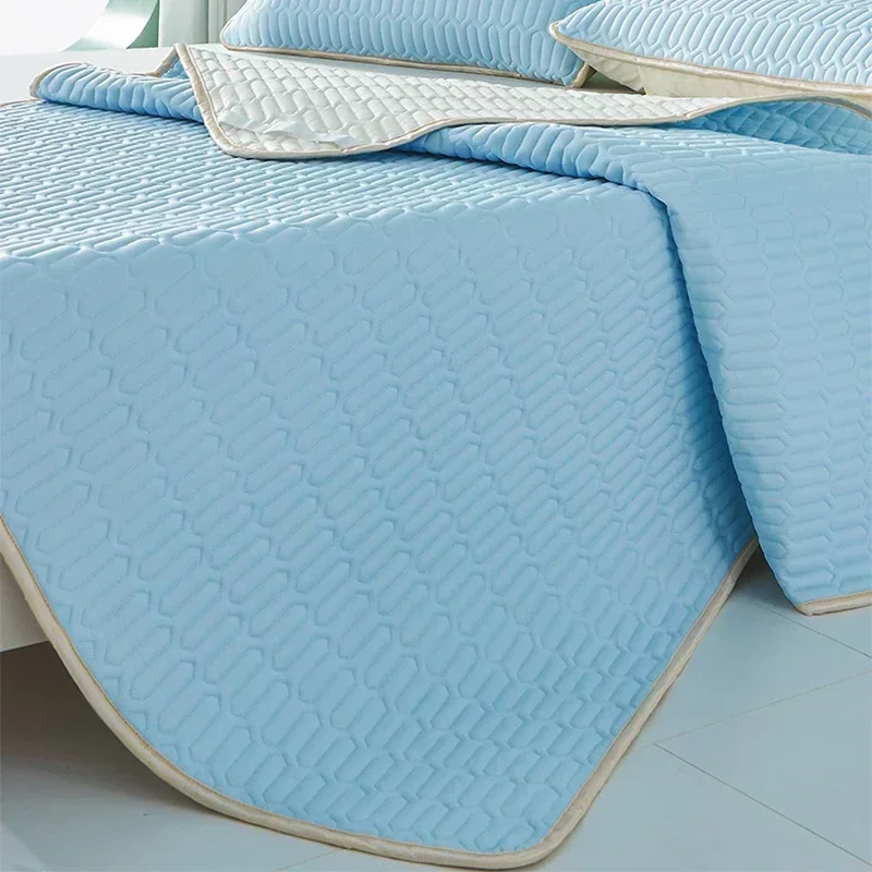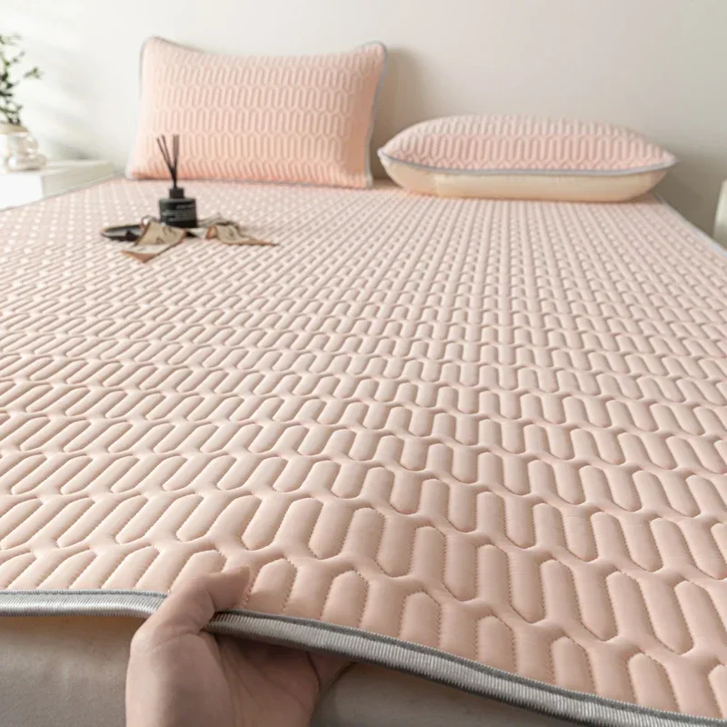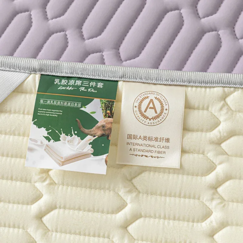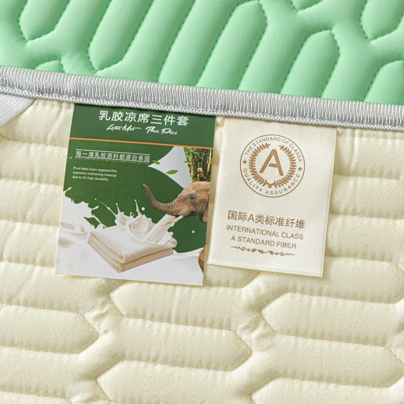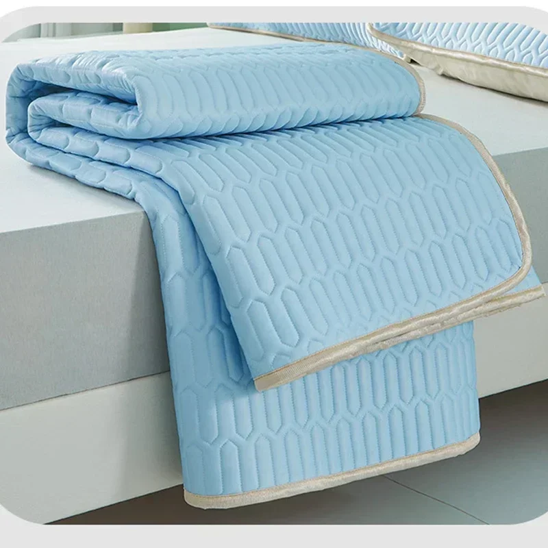 Cooling Bed Sheet Set with Pillowcases Ice Silk & Latex Quilted Breathable Cover Solid Summer Bedding Comfort & Heat Resistance