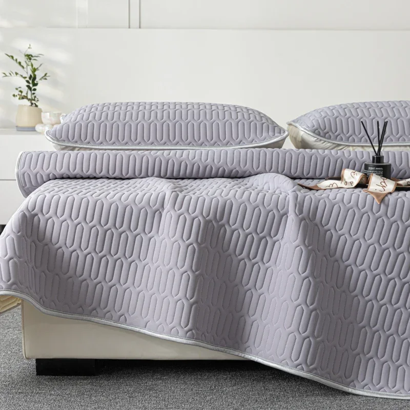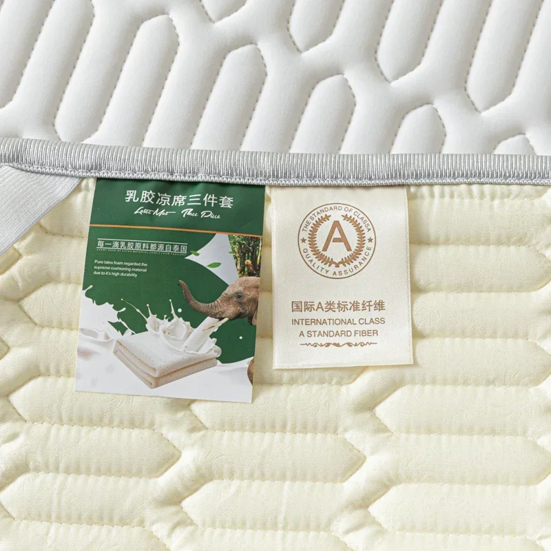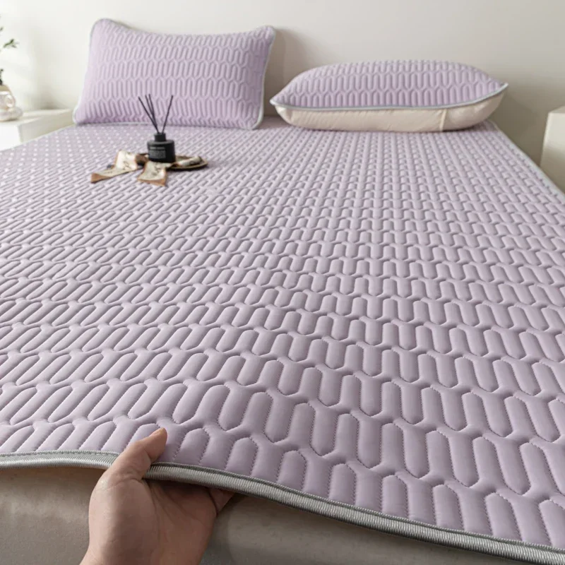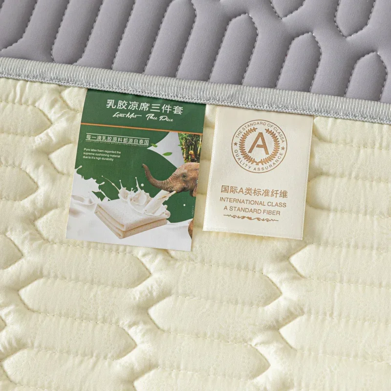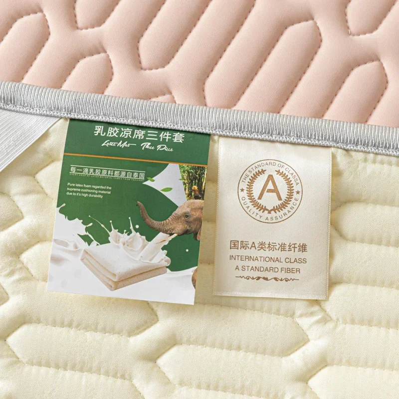 Cooling Bed Sheet Set with Pillowcases Ice Silk & Latex Quilted Breathable Cover Solid Summer Bedding Comfort & Heat Resistance