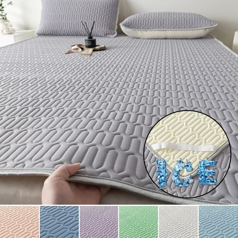 Latex Cool Feeling Ice Fabric Mattress Single/Double/Queen Bed Sheet Summer Cool Pad Mat Elastic Band Four Corners Bedspreads ì´ë¶ˆ