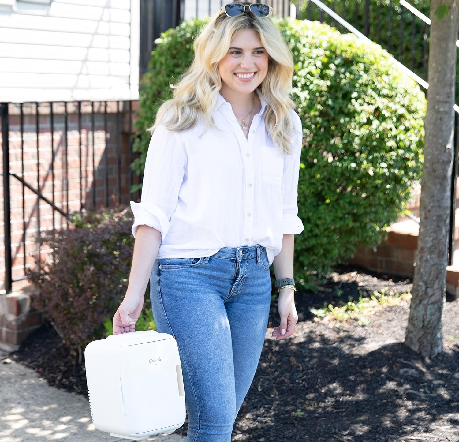 SLEEK, DURABLE DESIGN: The Cooler & Warmer has a beautiful matte finish on the outside. Sleek enough to leave at home or in the office – fits perfectly on your desk. Simply wipe it down to clean the inside and outside. The lightweight, sturdy polypropylene (PP) plastic design and magnetic self-lock latching door along with included DC adapter makes the Cooler/Warmer portable. The carrying handle on top makes transporting the appliance even more convenient.