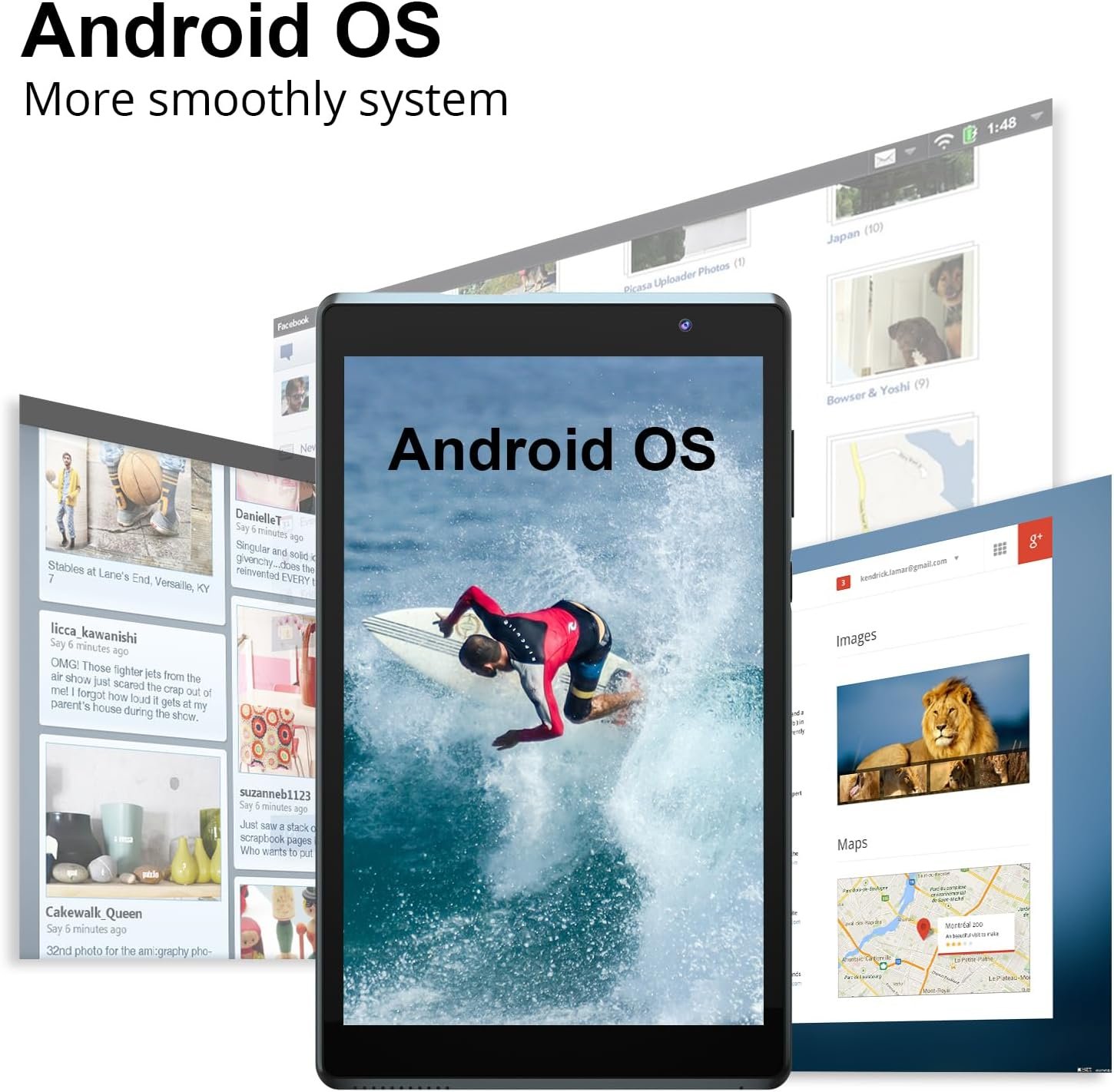 Portable—- This Android 15 tablet Just 0.7 pounds and Slim size, can put easily in bags, backpacks, and even back-pockets, making it possible for you to take anywhere. Can be a good choice as kids tablet.