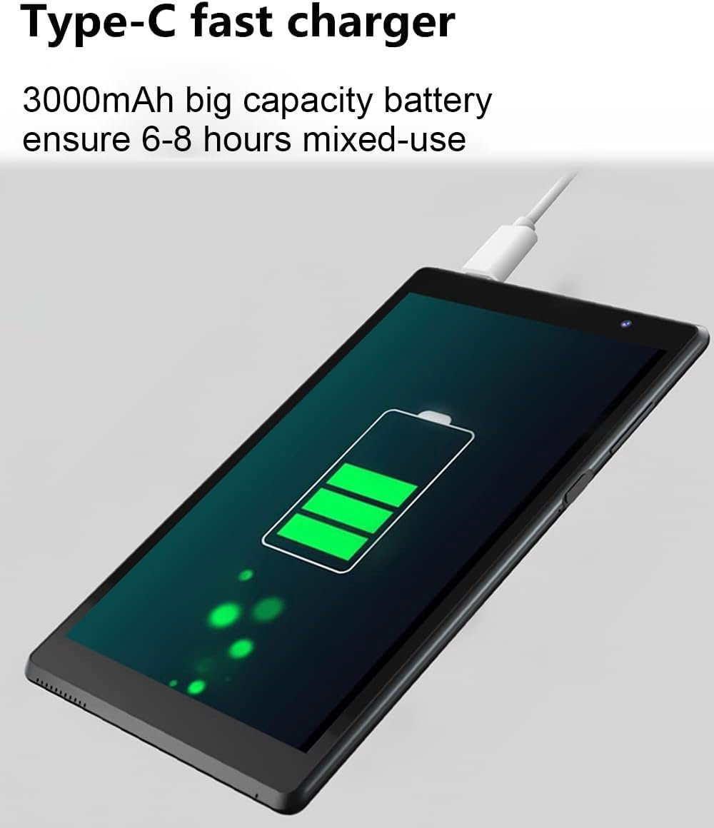 Long-Life Battery—- Tablets Equipped with a 3000mAh Built-in Rechargeable Battery, Enables about 8 Hours Mixed-use when Travelling. Read e-Books, Listen to Music, Watch a Movie, Play a Game, or Surf the Internet, This tablet will be a Perfect Choice.