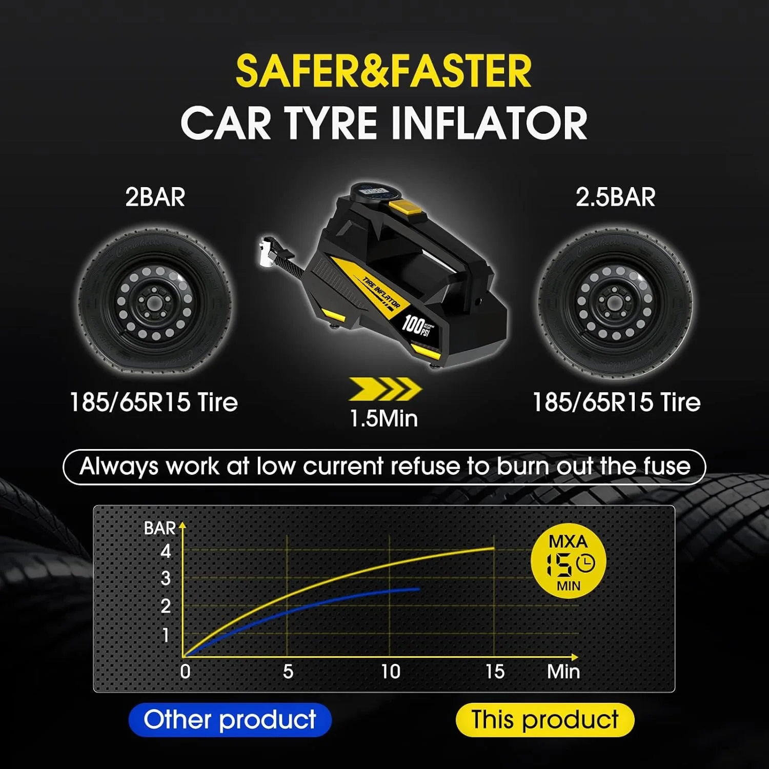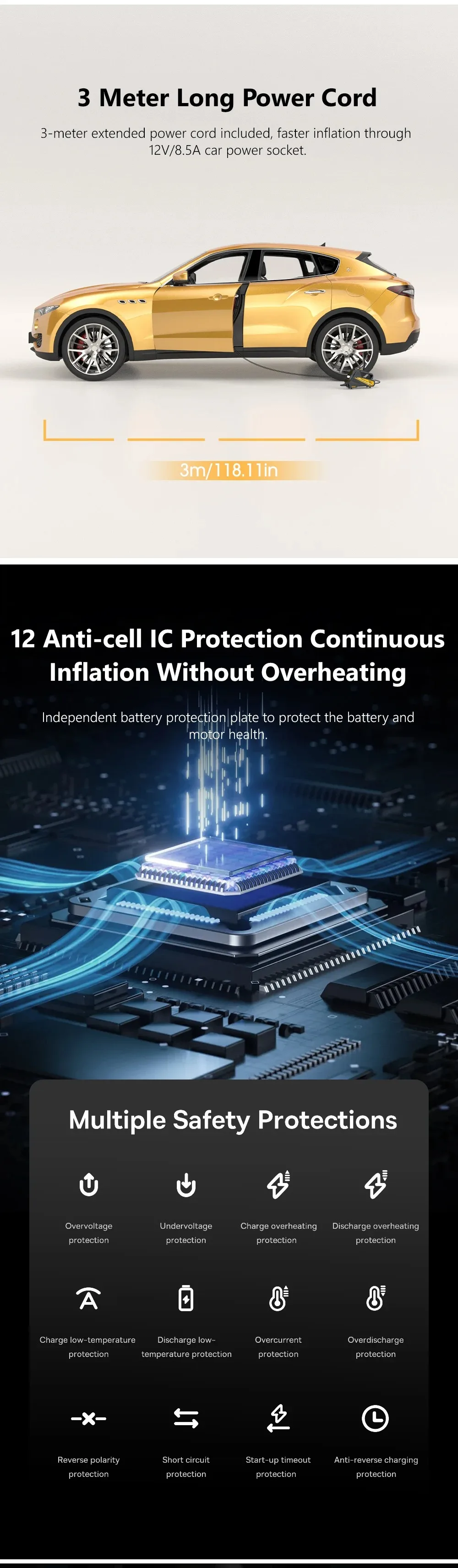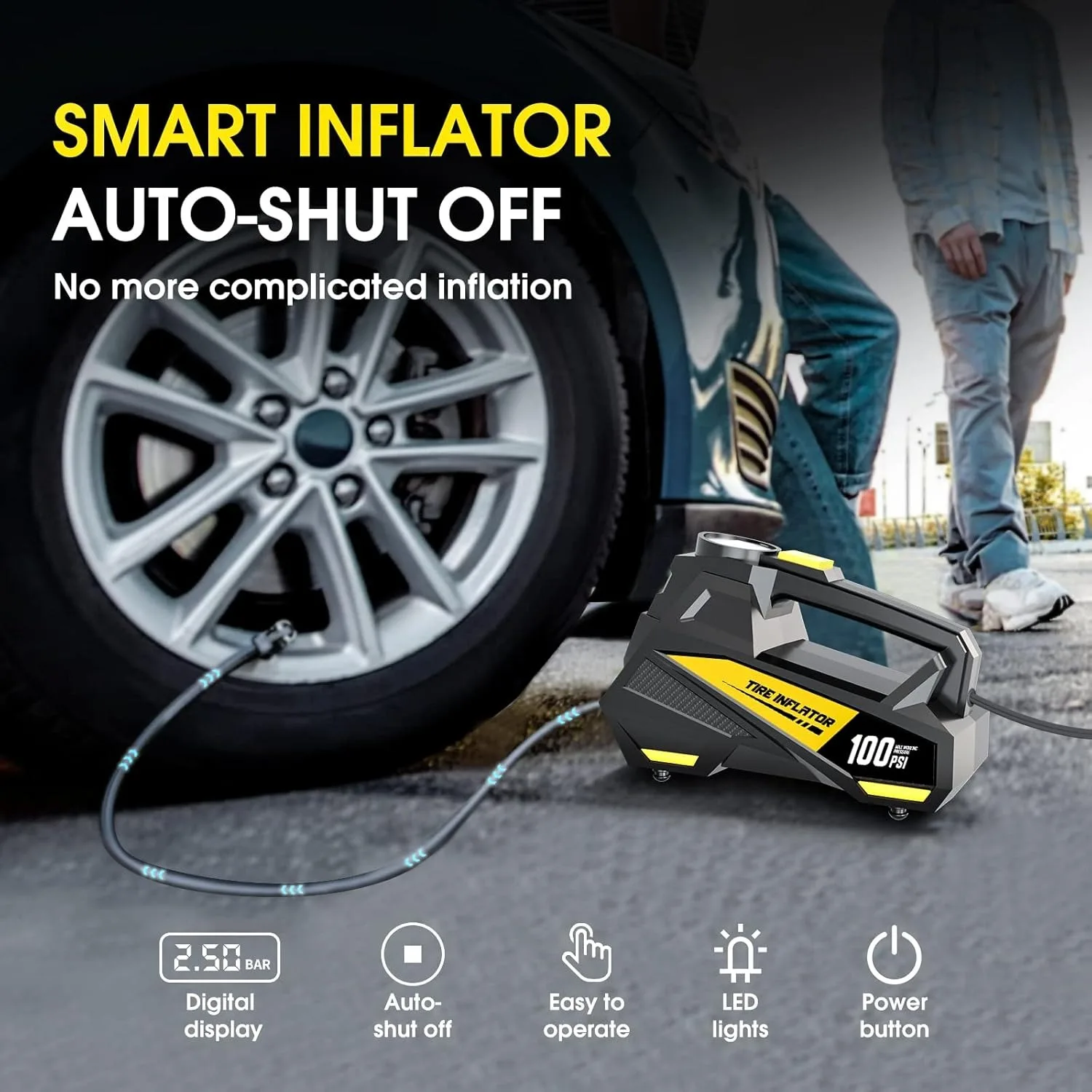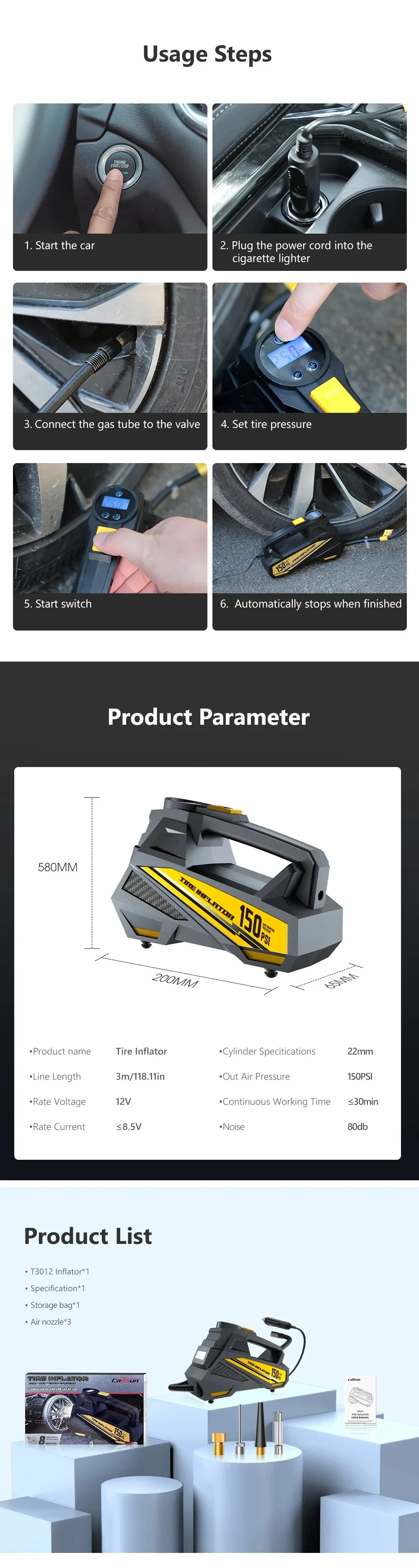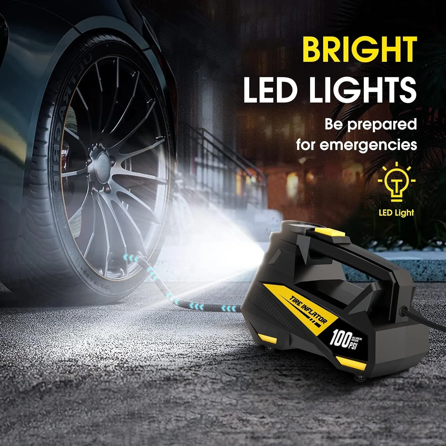 2 reviews for Corded Portable Car Air Pump Upgraded 12V 150PSI Electric Tire Inflator Pump Motorcycle Bike Ball LED Light Car Air Compressor