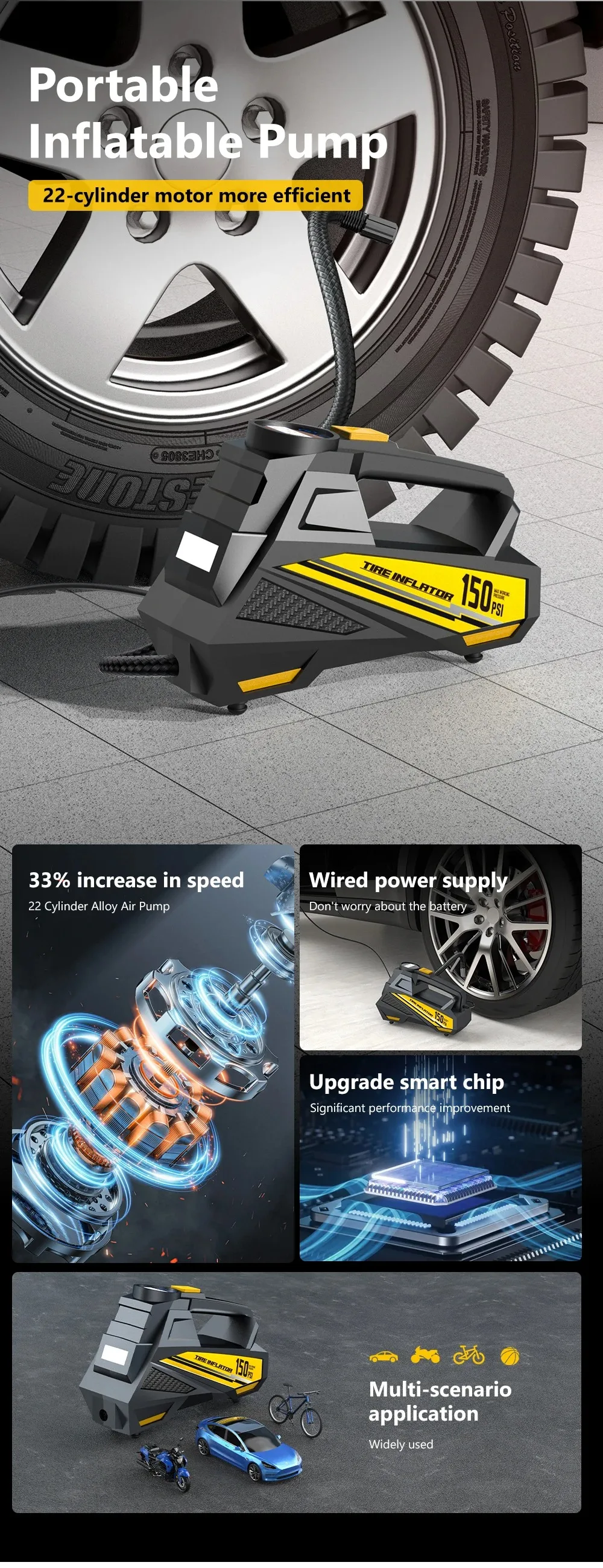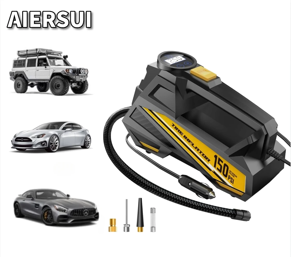 Corded Portable Car Air Pump Upgraded 12V 150PSI Electric Tire Inflator Pump Motorcycle Bike Ball LED Light Car Air Compressor
