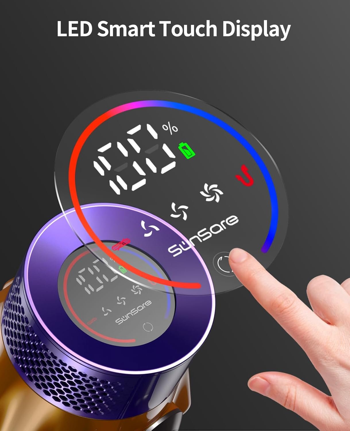 【Smart Touch Display】The cordless vacuums has a sensitive touch sensor system with a new colorful smart screen. You can touch the screen to adjust the suction power, read the running status and remaining power of the cordless vacuum in real time, and enjoy smart cleaning.