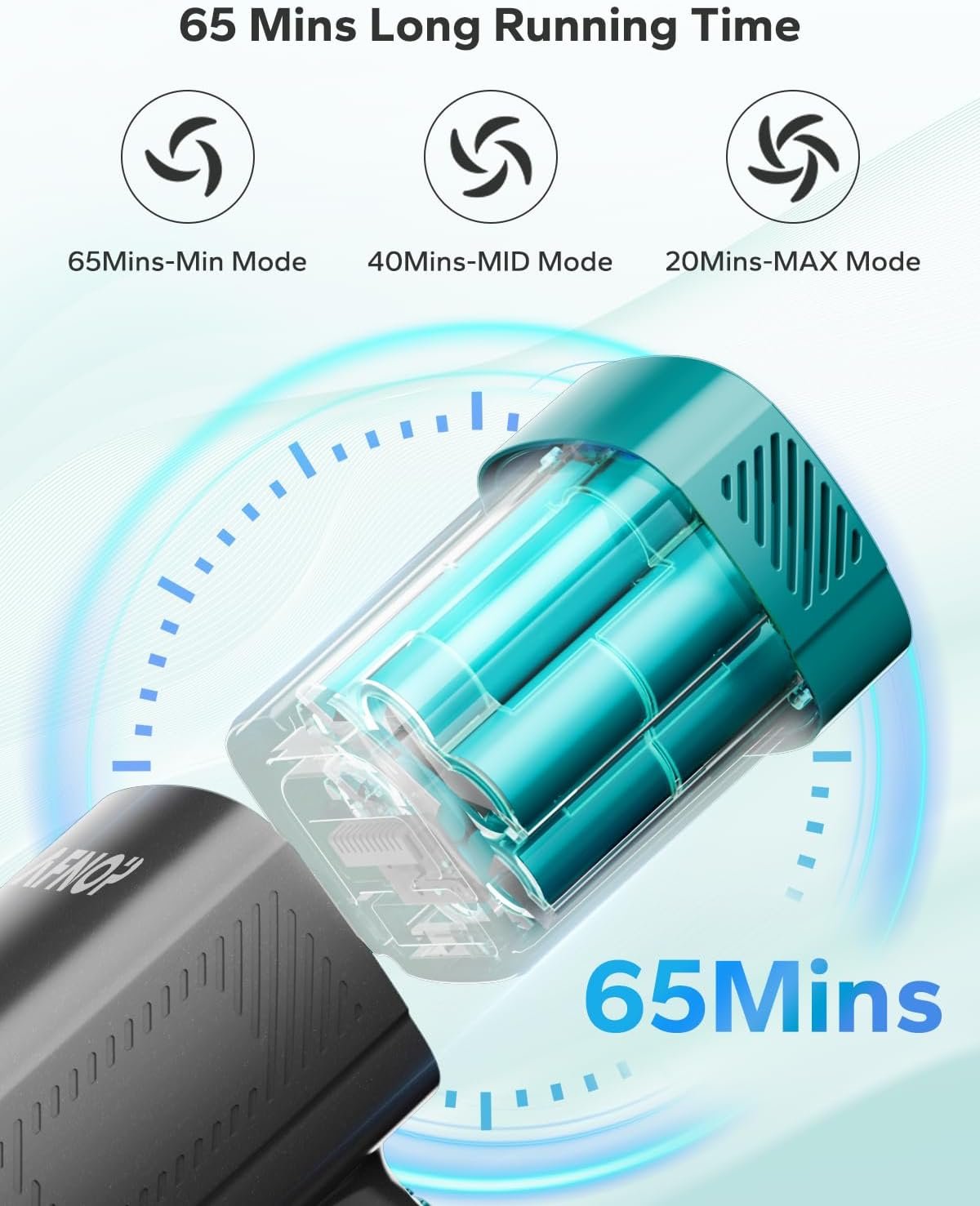【65Mins ultra-durable battery life】The stick vacuum runs up to 65 Mins (under min suction mode).Equipped with high-performance 7 * 2500mAh power core,the vacuum cleaner for home cleans in a new way. Large area cleaning without frequent charging. Pure 16 long-lasting battery life allows you to enjoy the fun of cleaning.