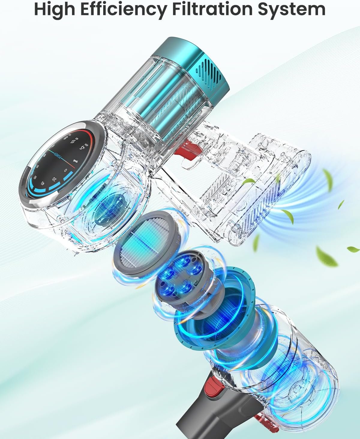 【Capture 99.9% dust particles】 High-speed cyclone generates strong centrifugal force and multiple filtrations to effectively capture 99.9% of tiny dust particles. Dust only enters but not exits to avoid secondary pollution; 1.5L large-capacity dust cup can carry more dust, one-click dust removal, and easy dumping of garbage.
