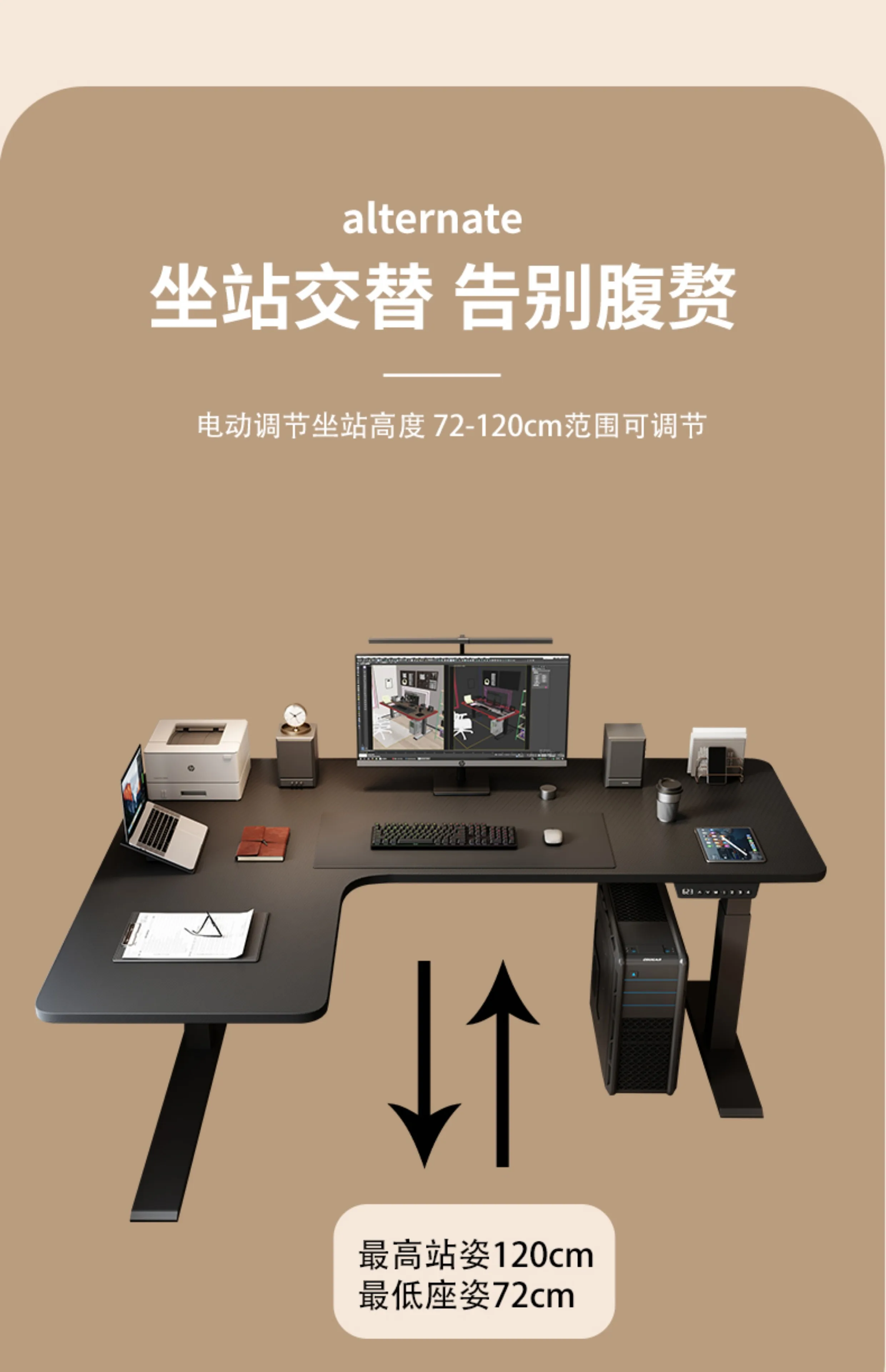 Corner Computer Table, Game Live Streaming Host, Intelligent Electric Lifting Table, Corner Type