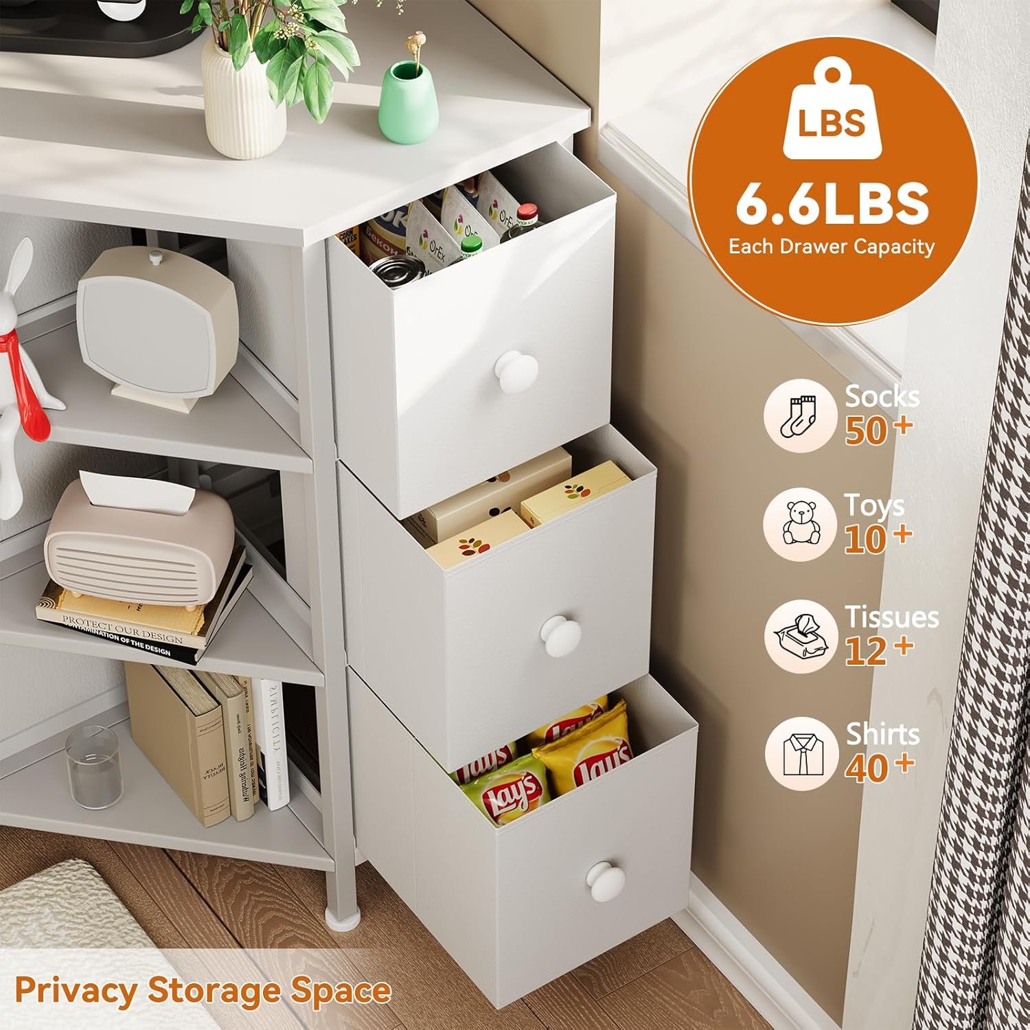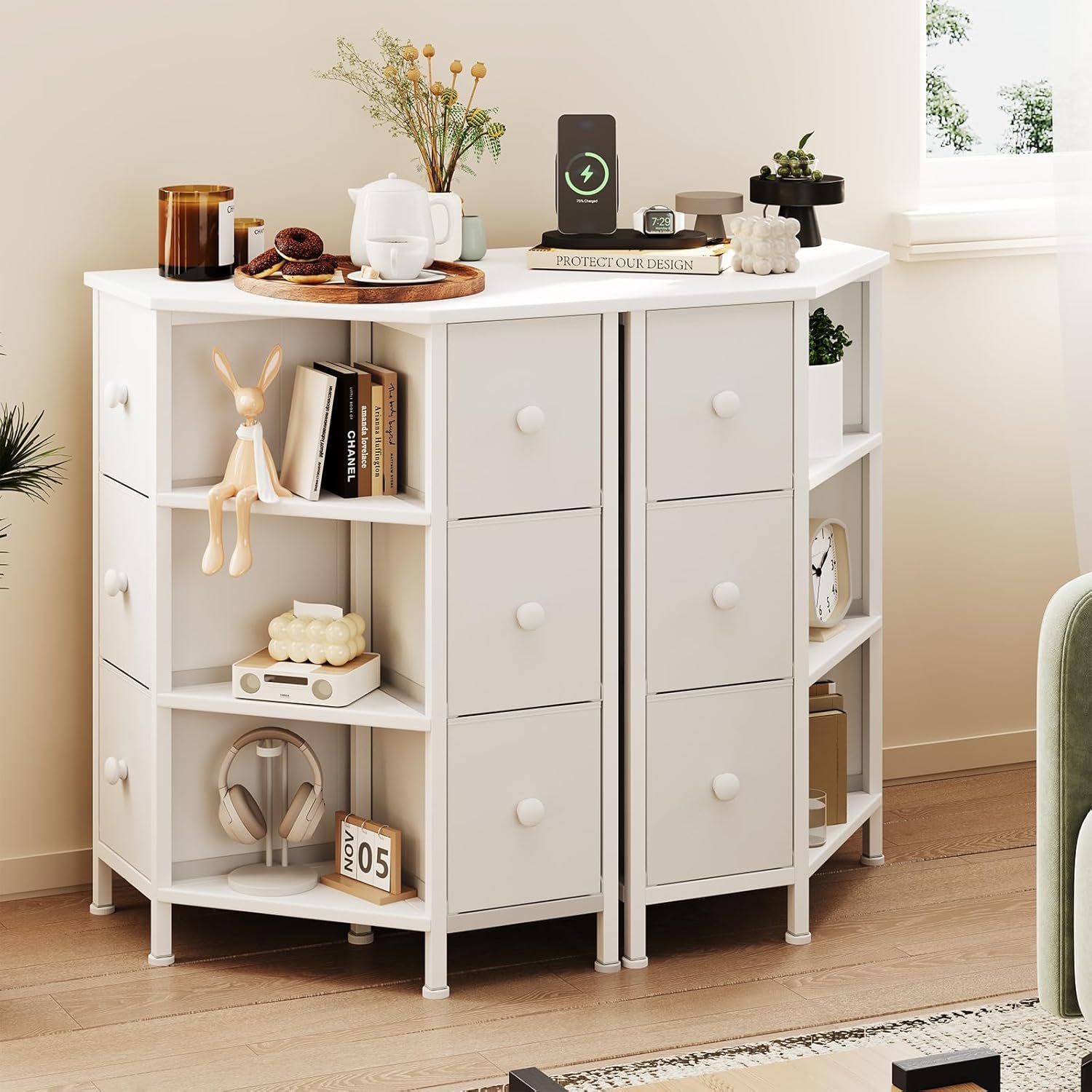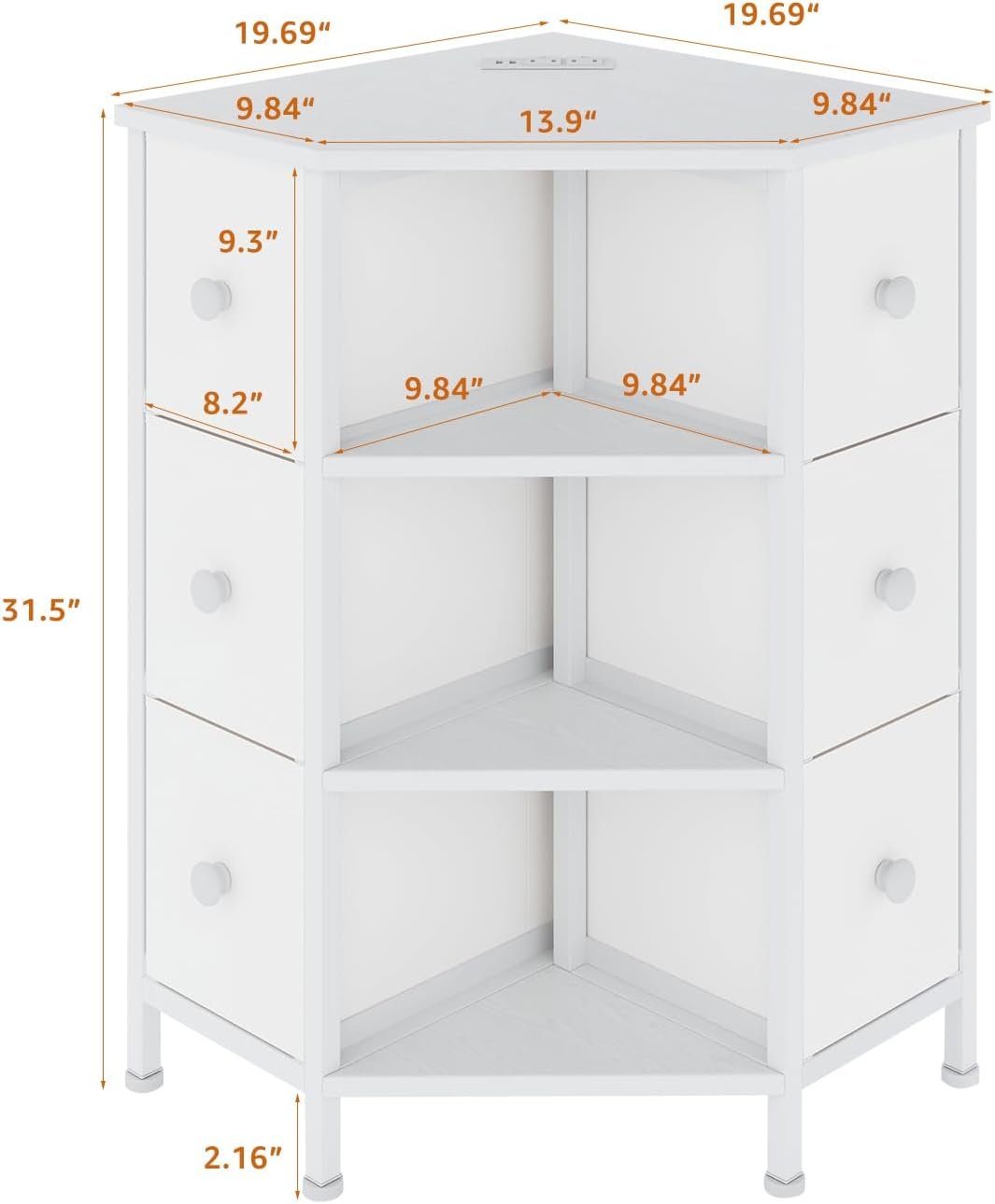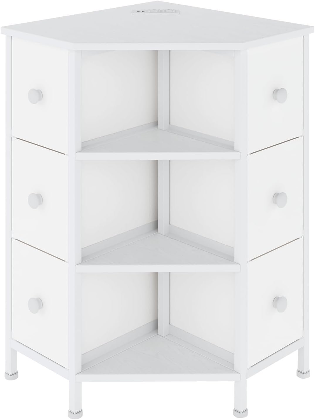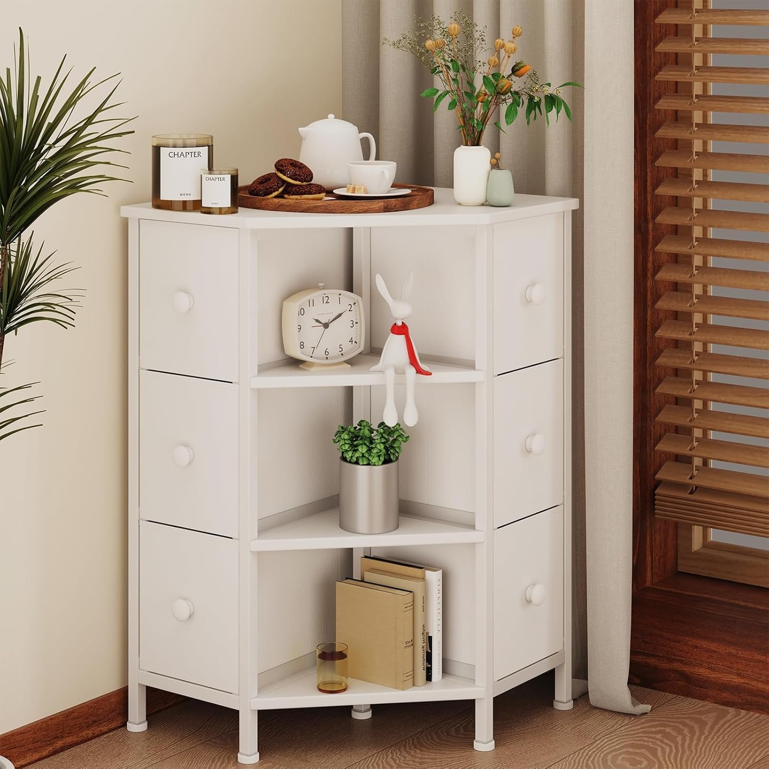 Ample Storage for a Clutter-Free Home: With 3 open shelves and 6 fabric drawers, this corner cabinet offers plenty of space to store and display your books, toys, photo albums, crafts, and more. Keep your space tidy and organized while showcasing your favorite items.