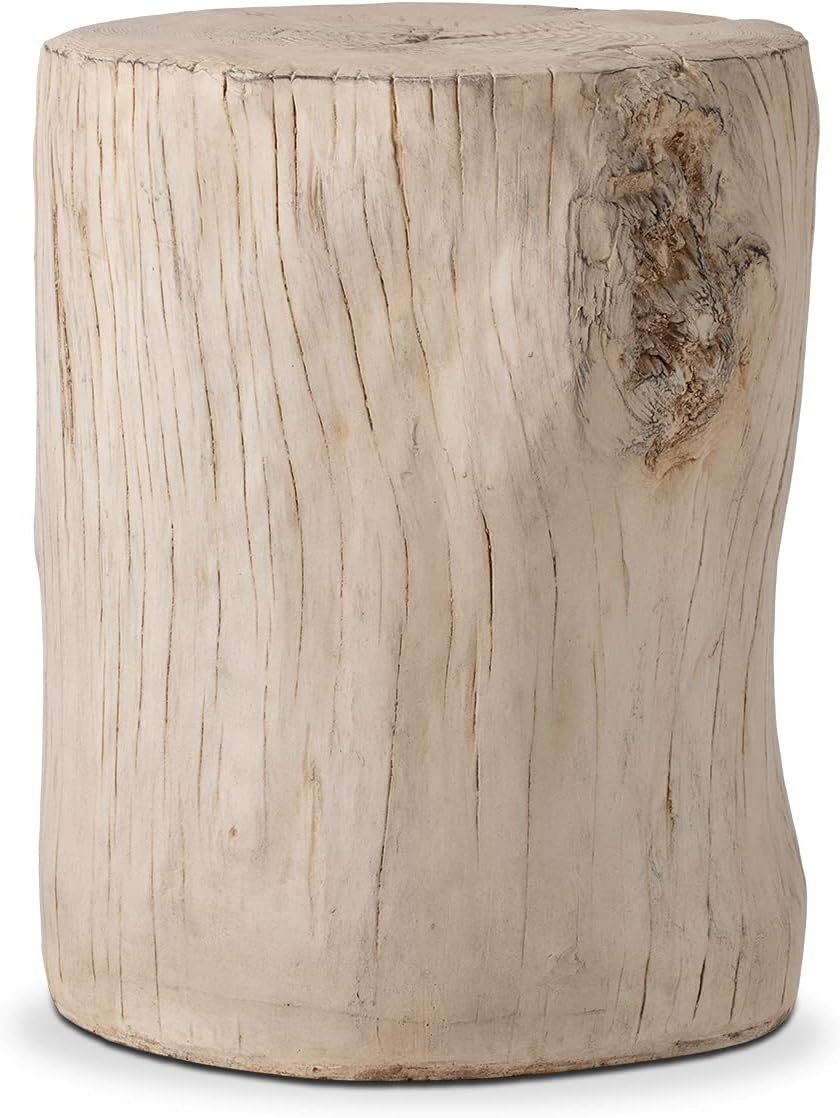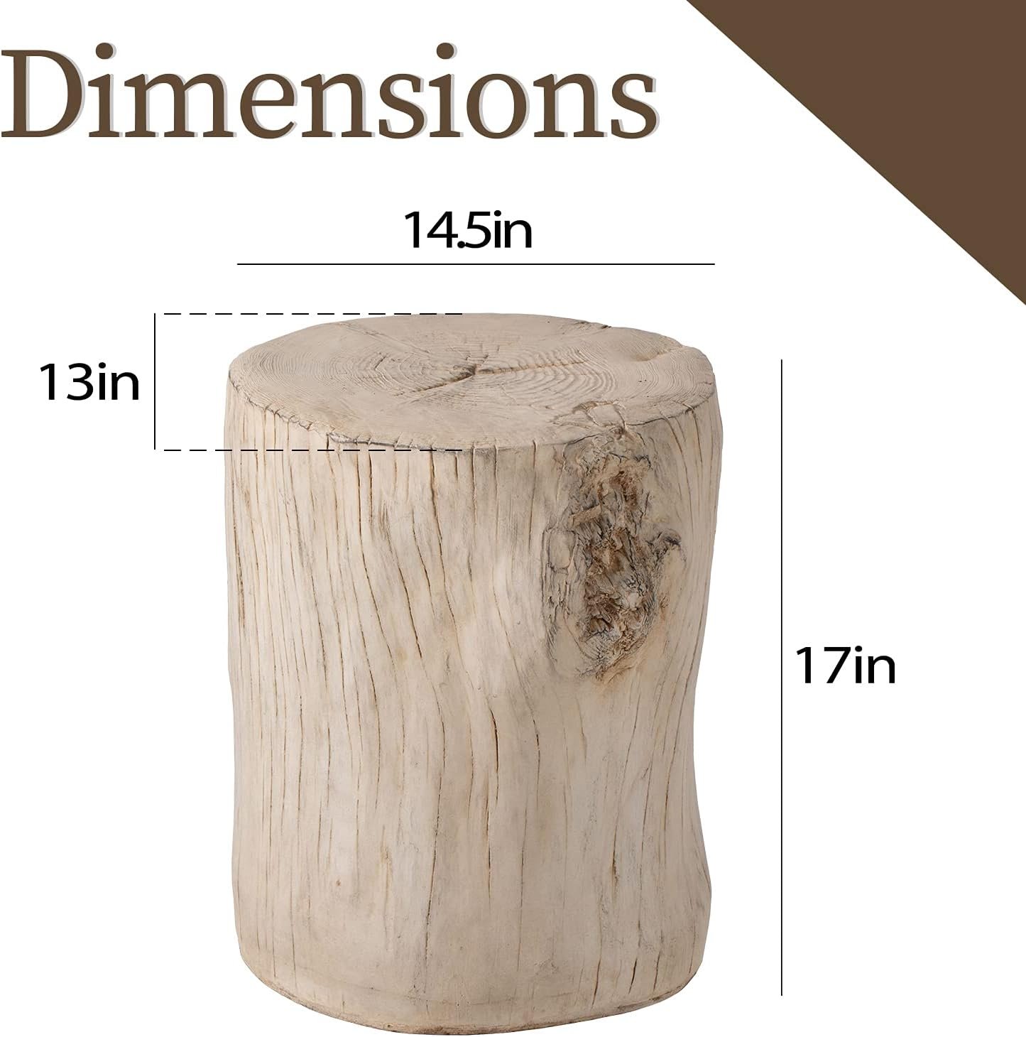 COSIEST Outdoor Antique Beige Side Table Faux Wood, Hand-Painted Wood Stump Stool, Ottomans, Plant Stand, Deck or Garden