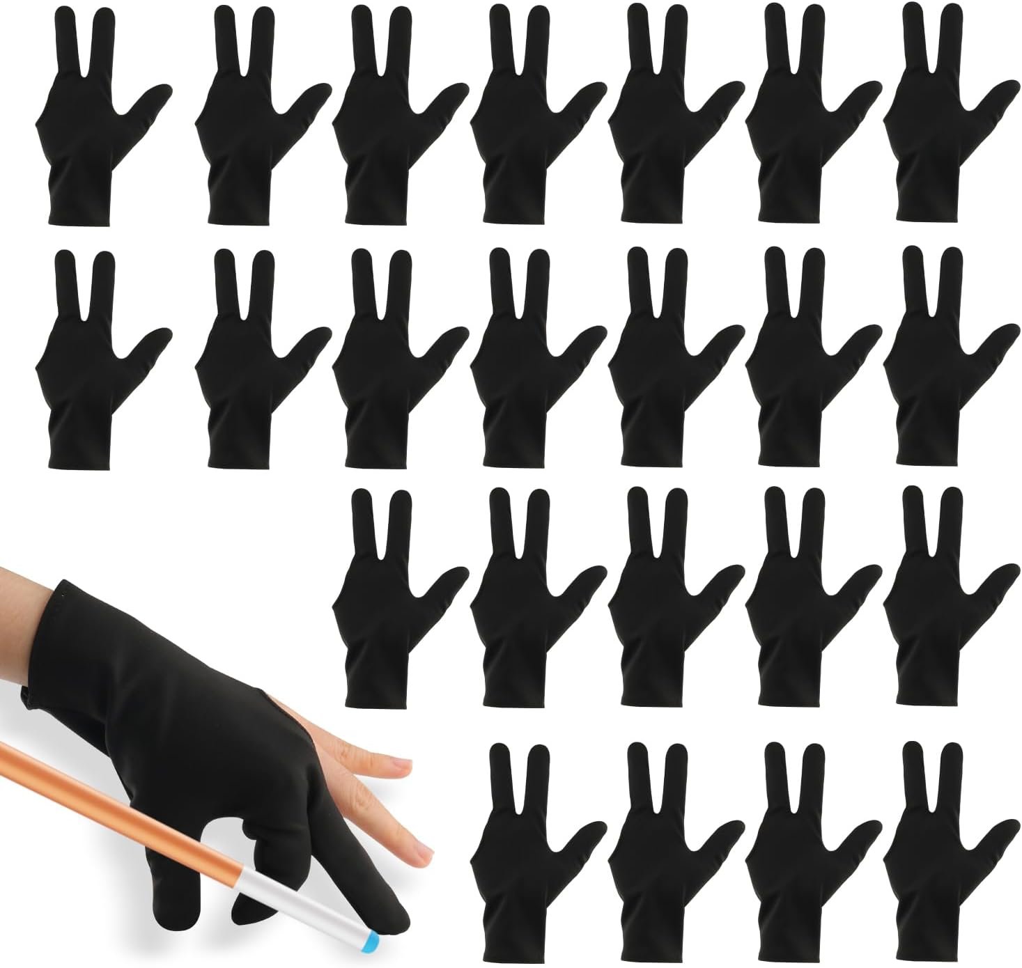 Cositina 24 Pack Billiard Gloves Three Finger Cue Pool Glove Elastic Universal Sport Gloves for Women Men Left & Right Hand Billiard Shooters Accessories