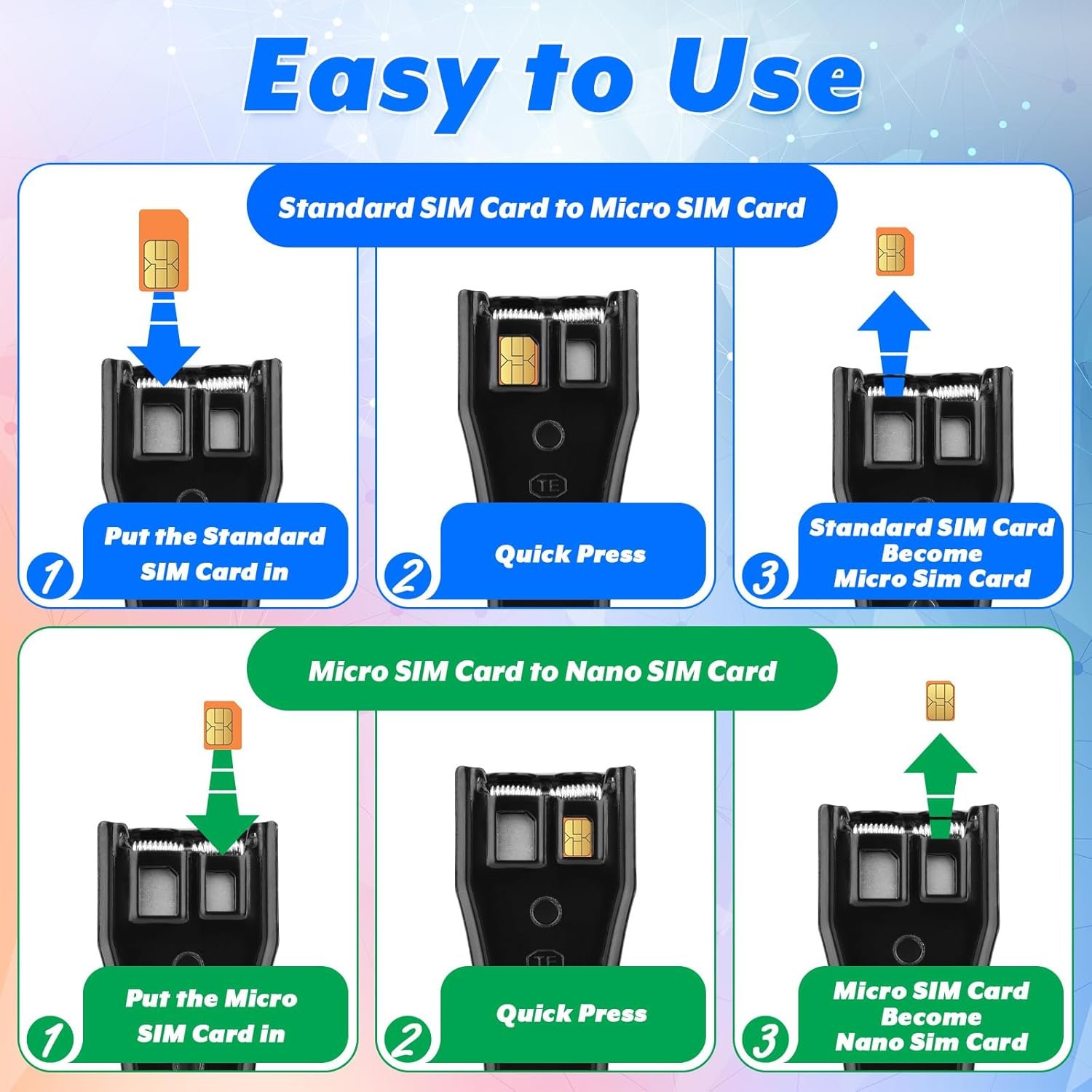 The SIM card adapters fit most mobile devices and standards , so easy to use and perfect match.