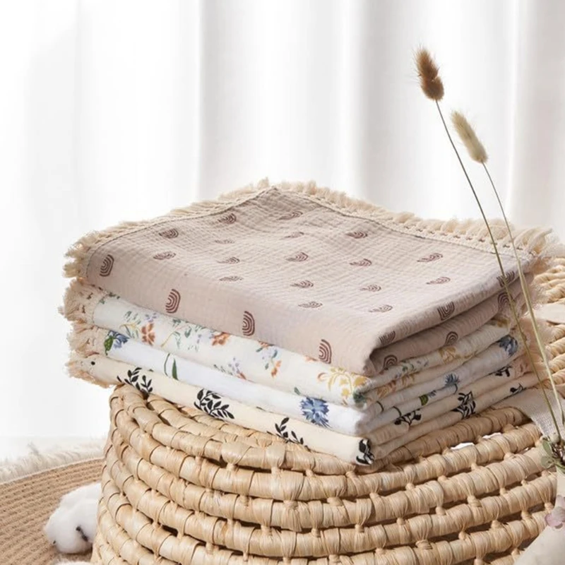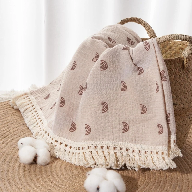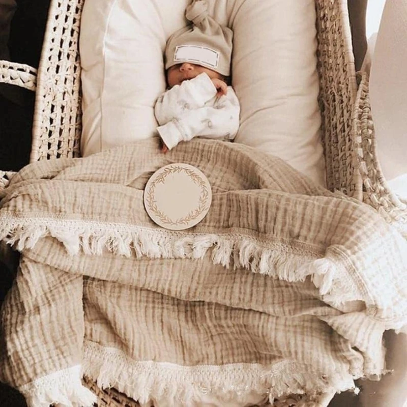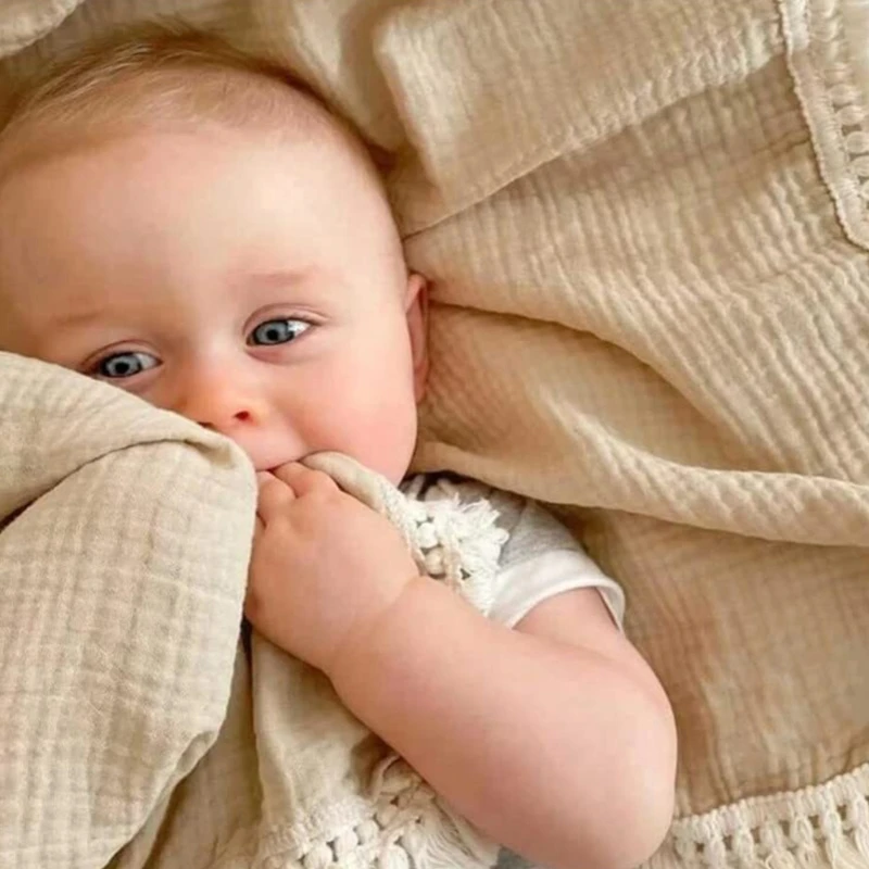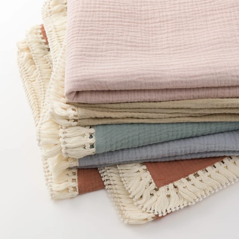 Cotton Gauze Baby Muslin Blanket Swaddle Blanket New Soft Tassels Newborn Receiving Blanket Wrap Baby Boy Girl Stroller Cover