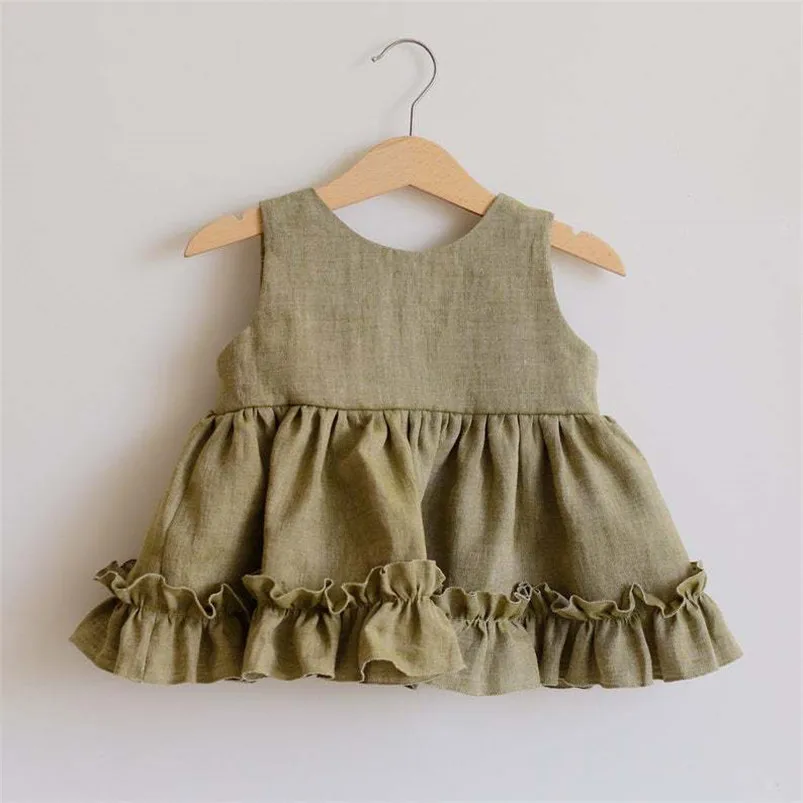 Cotton Linen Baby Girls Clothes Summer 3 Layers Cake Tutu Dress for Girls Clothing Breathable Ruffles Lace Strap Costumes Baby
