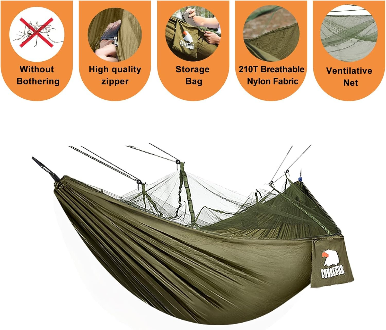 COVACURE Camping Hammock with Net – Lightweight Double Hammock 2 * 10ft Straps, Portable Hammocks, Camping Accessories for Outdoor, Hiking, Camping, Backpacking, Travel, Beach