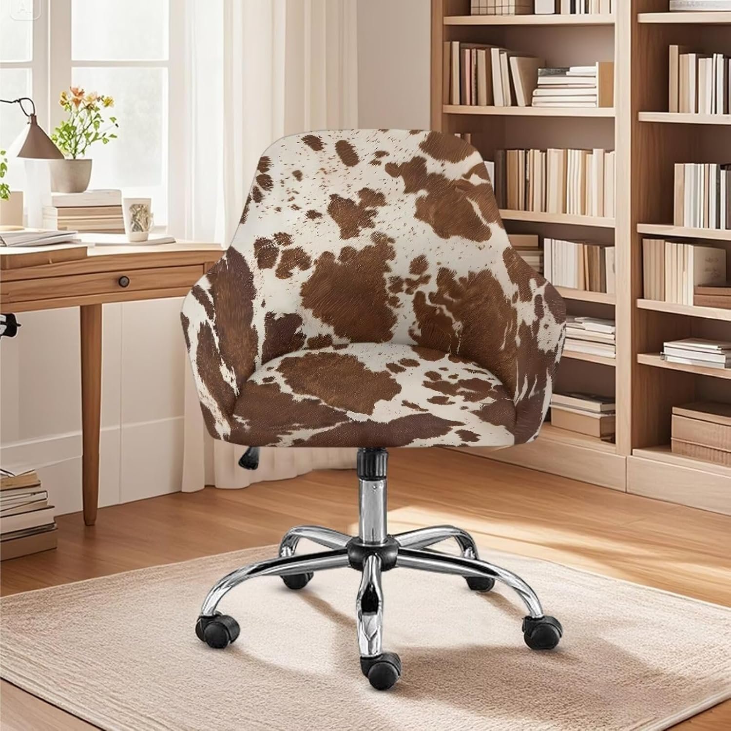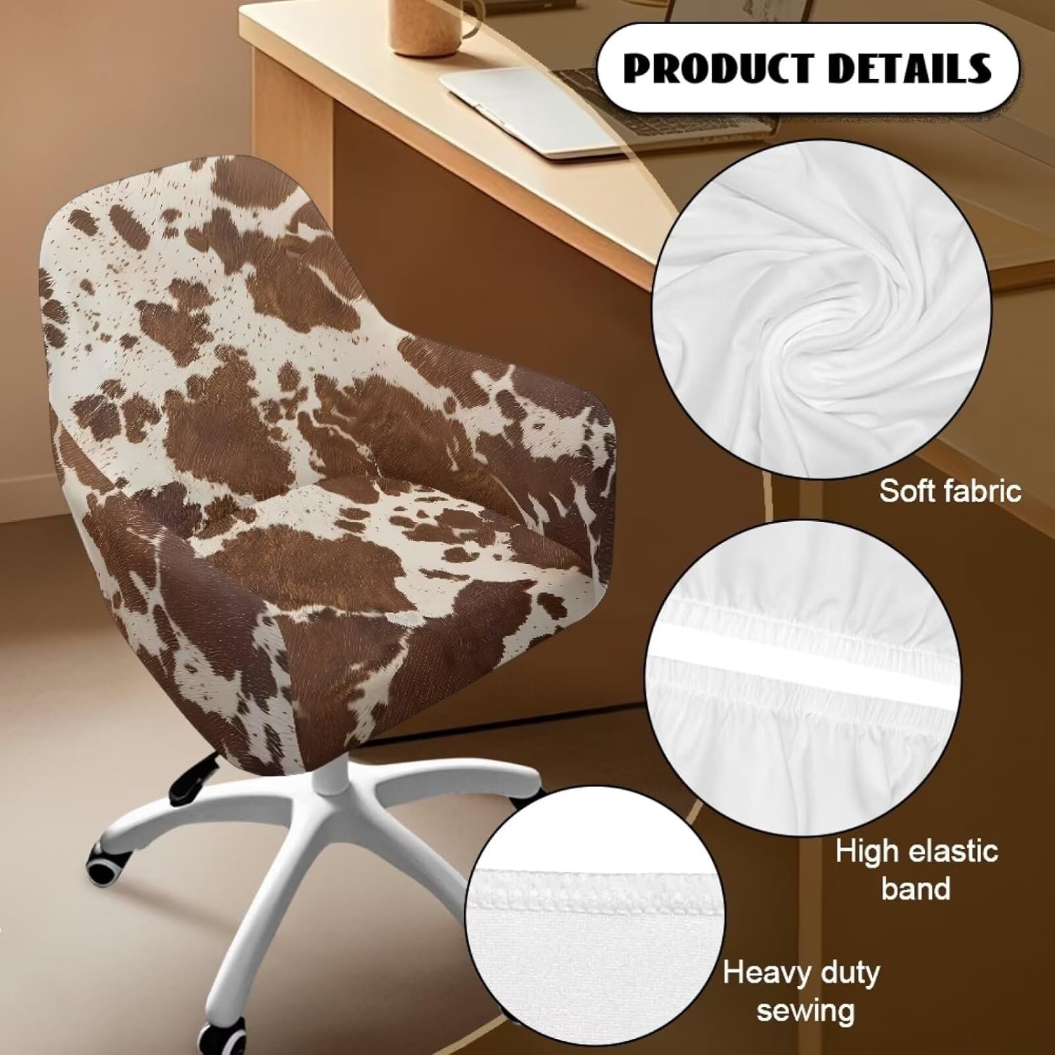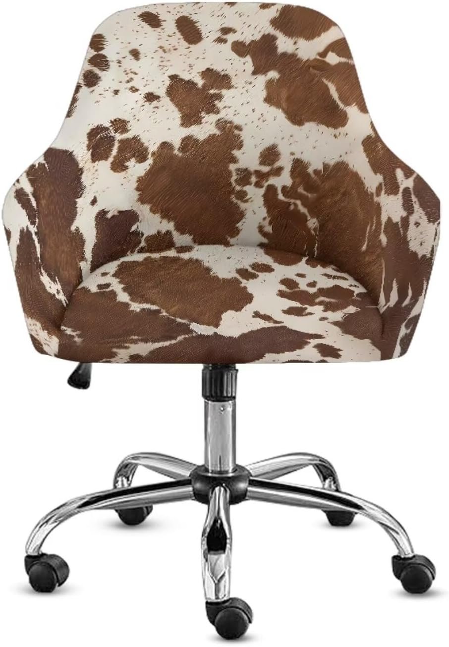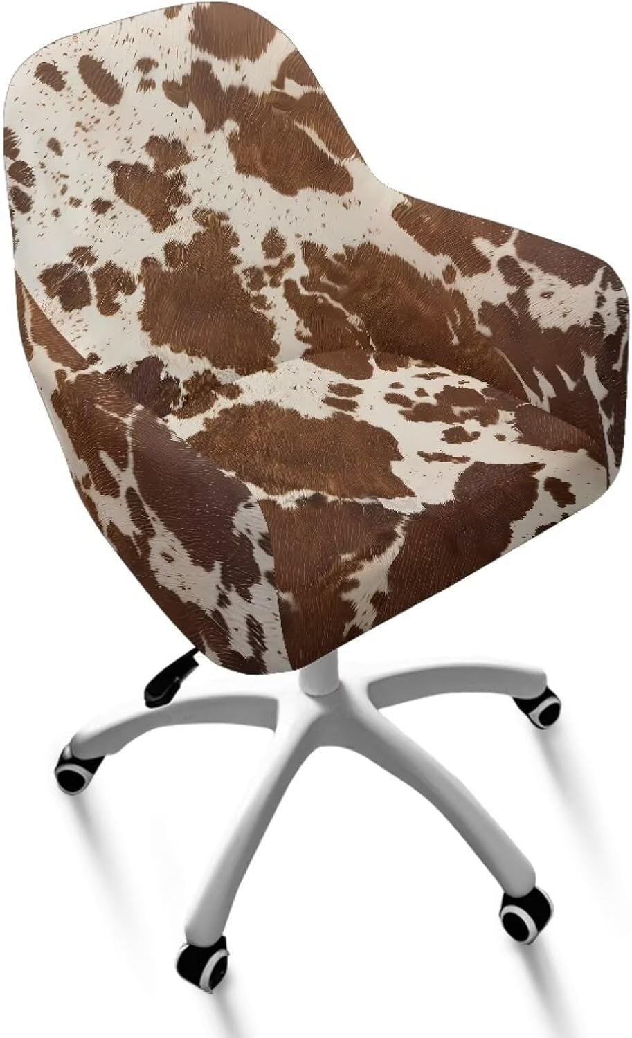 Cow Pattern Dining Chair Slipcovers Comfortable Office Chair Slipcovers Bar Stool Protector with Armrest, Swivel Armchair Covers Furniture Protector