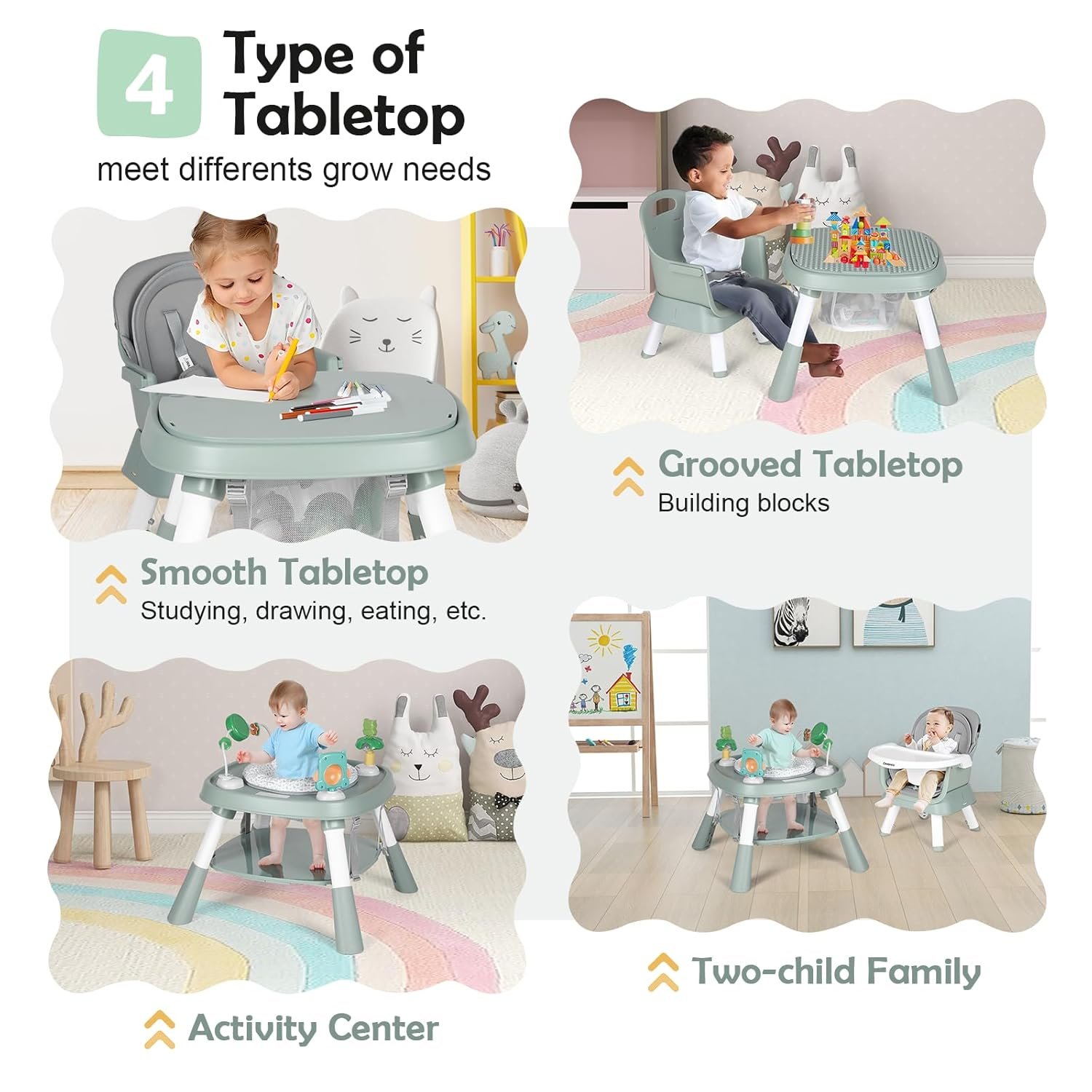 Cowiewie Baby High Chair 16-in-1 Convertible Highchairs for Toddlers Table,Portable High Chair for Baby,Chair Set Building Block Table Highchair with Safety Harness, Removable Tray(Green