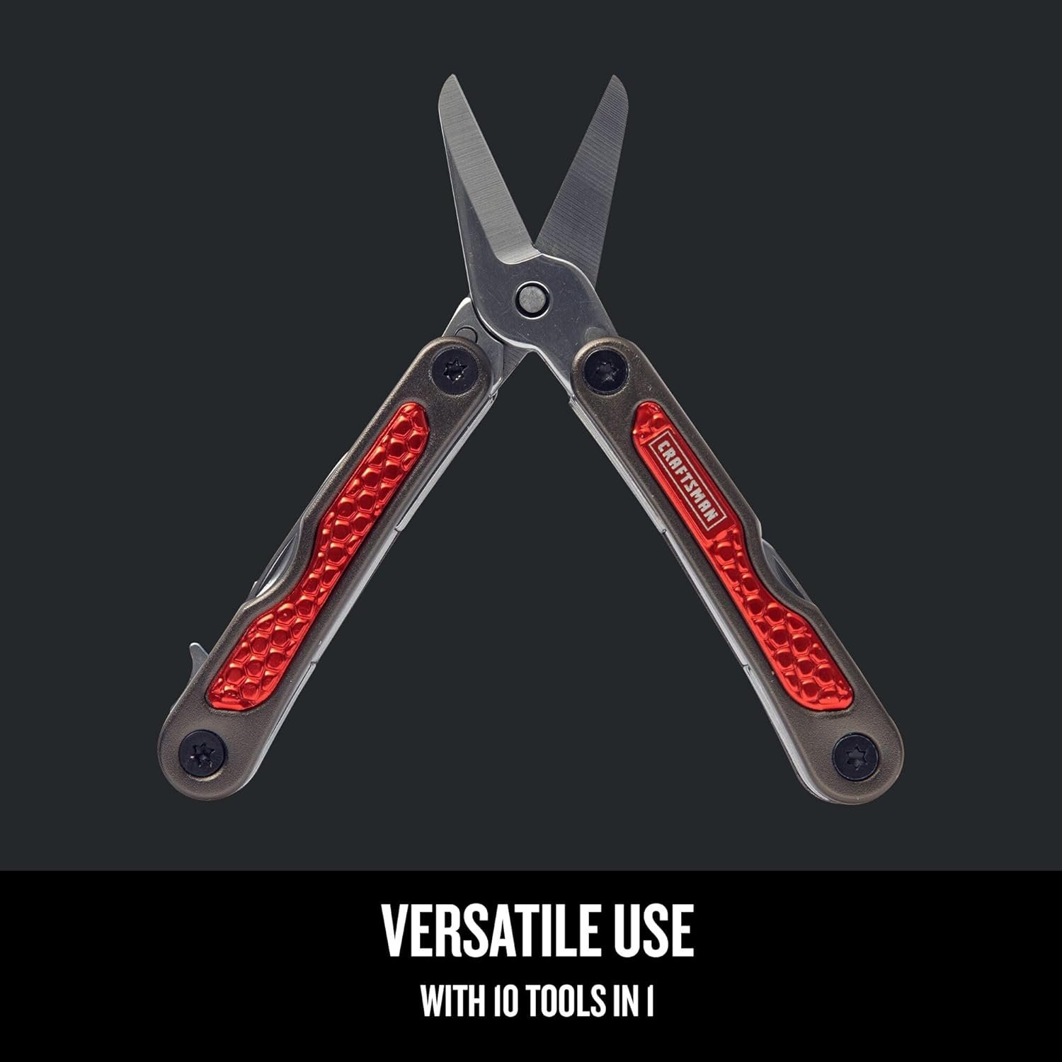 MULTI-PURPOSE VERSATILITY: 10-in-1 tool includes snips, knife, scissors, bottle opener, can opener, hard file, soft file, Phillips head screwdriver, and flat head screwdriver
