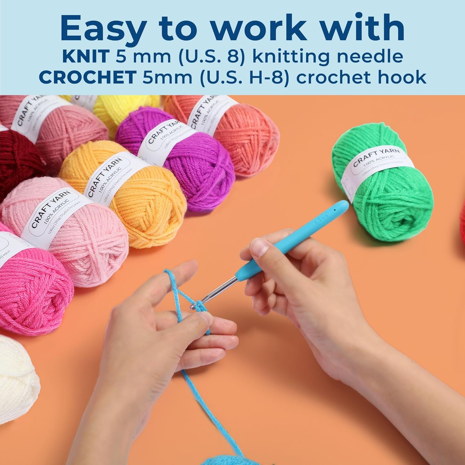 100% Worsted Acrylic Yarn – Easy to Work With & Easy to Care For: Our high-quality #4 acrylic beginner yarn is non-fraying, doesn’t split, and is knot-free—ensuring a smooth, frustration-free crocheting experience. Each color offers 35 yards of consistent gauge (4-ply). Plus, it’s machine washable in cold water and dryer-safe on low heat, with minimal shrinkage—perfect for everyday crafting.