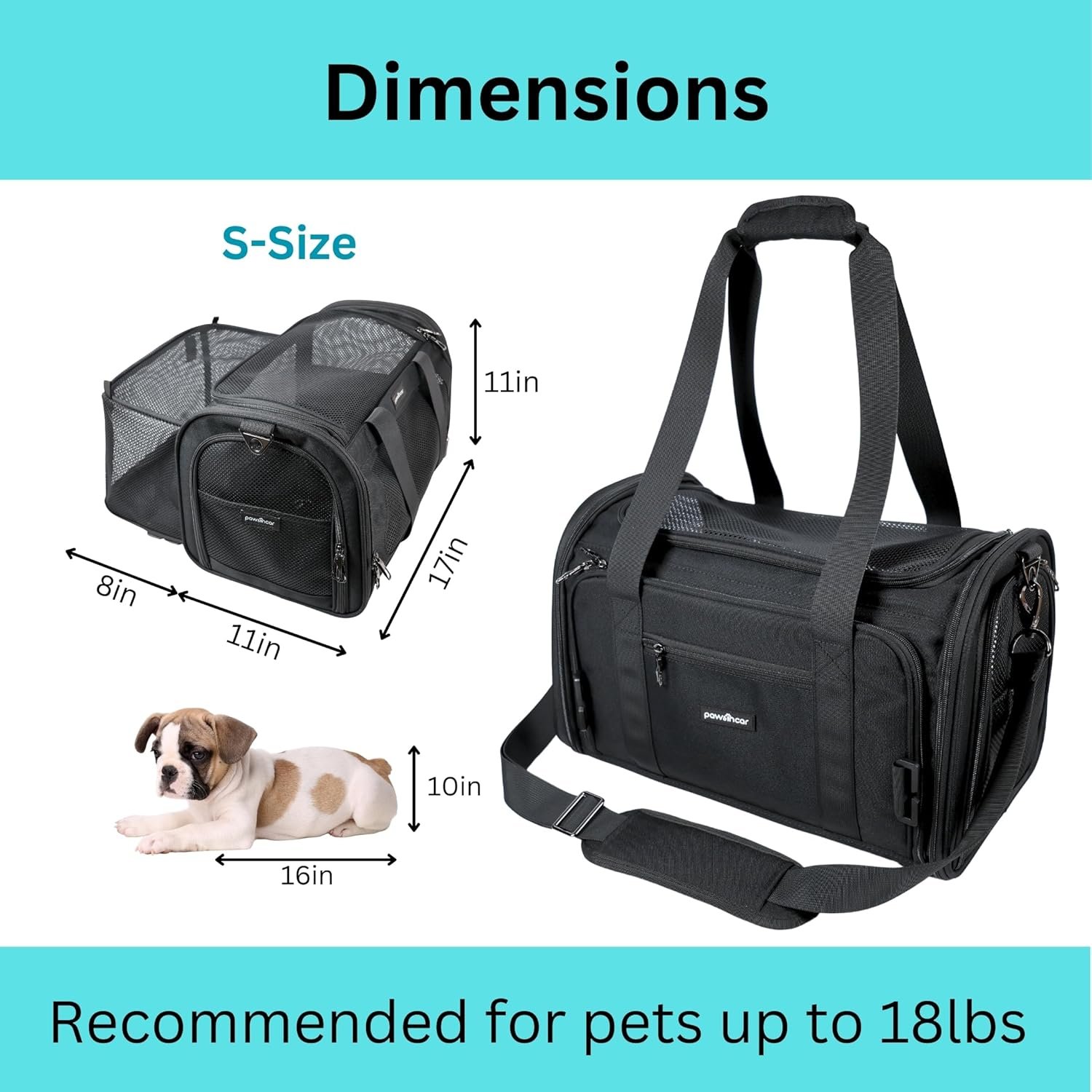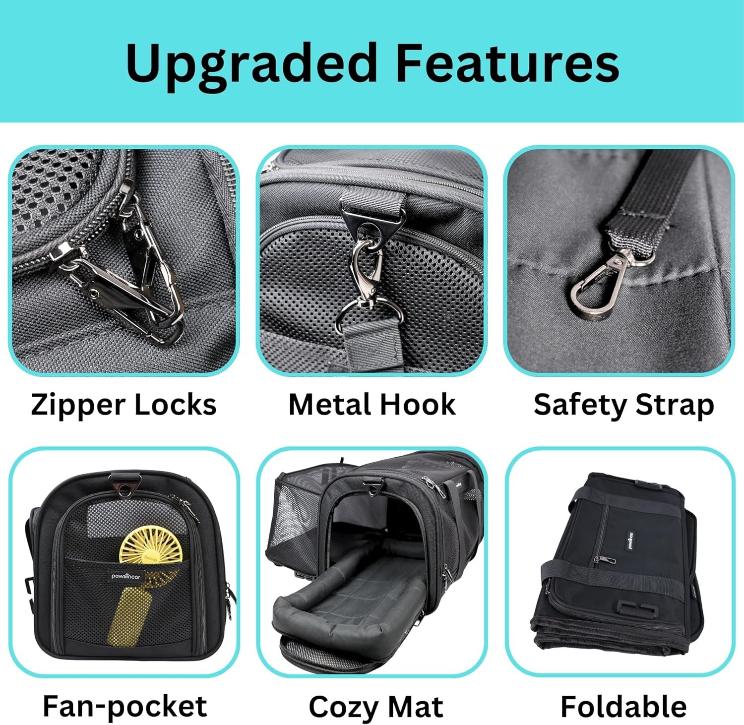 Airline-Approved: This airline-approved dog carrier is suitable for in-cabin pet travel with most airlines. You can place this dog travel bag under the seat in front of you. With our unique design, you can put a portable fan inside our fan-friendly mesh pocket to increase airflow. You can also expand our small-sized carrier under seat or underseat (as it is an expandable pet carrier) to provide more space and airflow for your dogs and cats, provided that the airline’s air helper doesn’t restrict you. Please check your airline’s specific size requirements before making a purchase (airline-approved cat carrier, pet carrier airline approved, TSA airplane approved).
