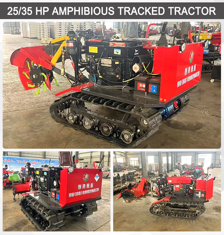 The compact Multi-function crawler tractor rotary tiller produced by our company standard with soil shovel, rotary tiller, ditching machine, weeding wheel, backfilling machine 5 kinds of agricultural tools; The machine is small, low center of gravity, easy to operate, can be rotated in place, strong applicability, can achieve large machinery can not enter the various mountains, hills, plains, dry land, paddy field, orchard, small land, greenhouse, tea garden, narrow land and other different terrain and soil operations. Suitable for a variety of soil: frozen soil, hard soil, clay, black soil, mountain, soft soil can be used.