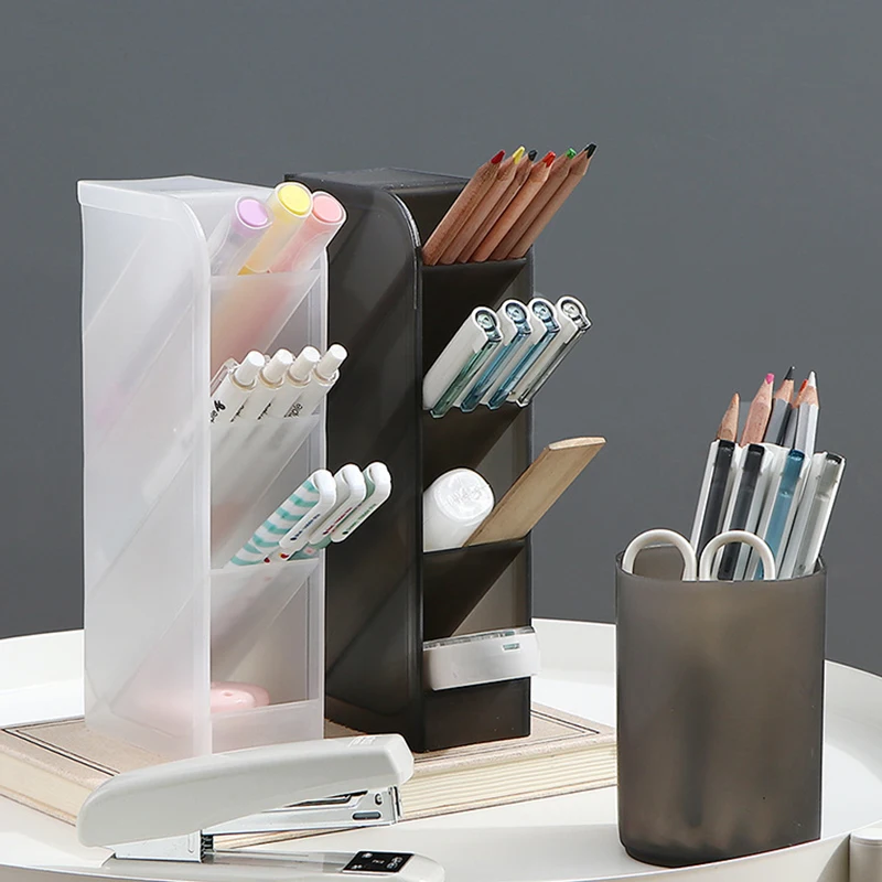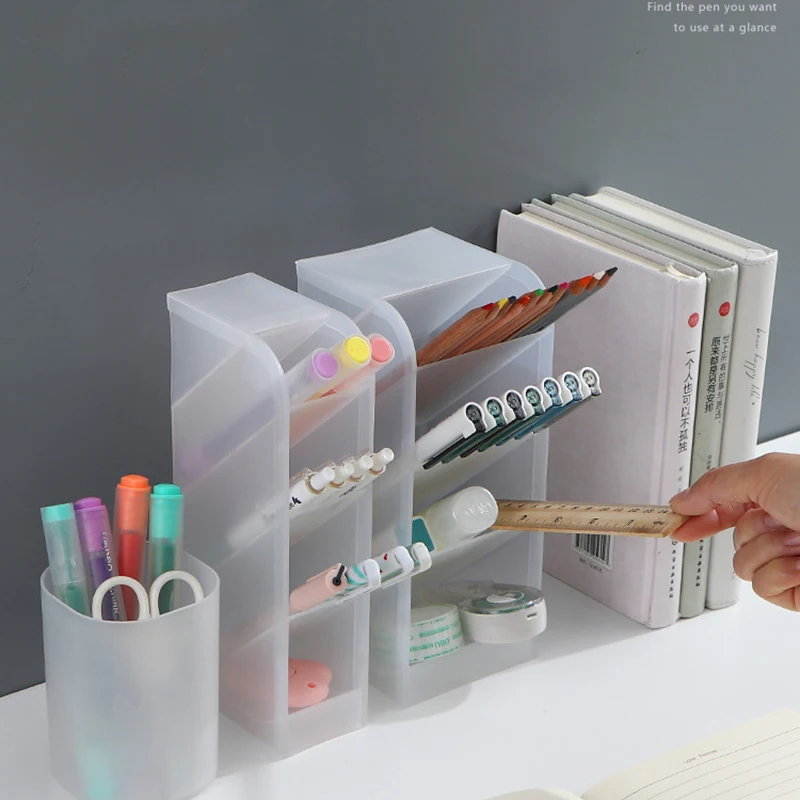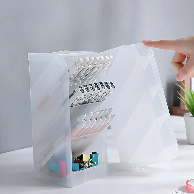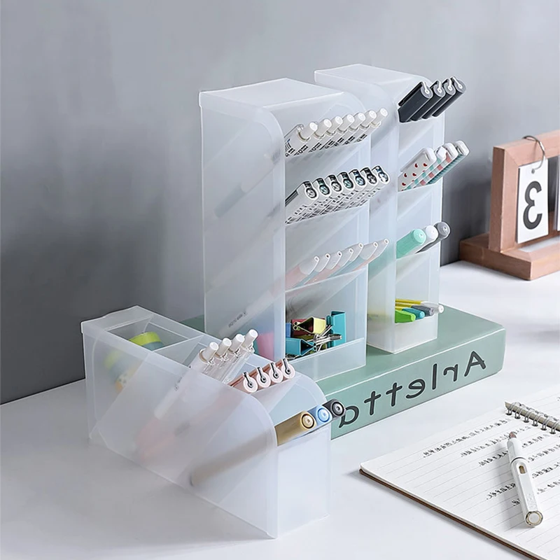 Creative Transparent Oblique Insert Pen Holder Student Desktop Pen Bucket Storage Box Stationery Organizer Office Pen Holder