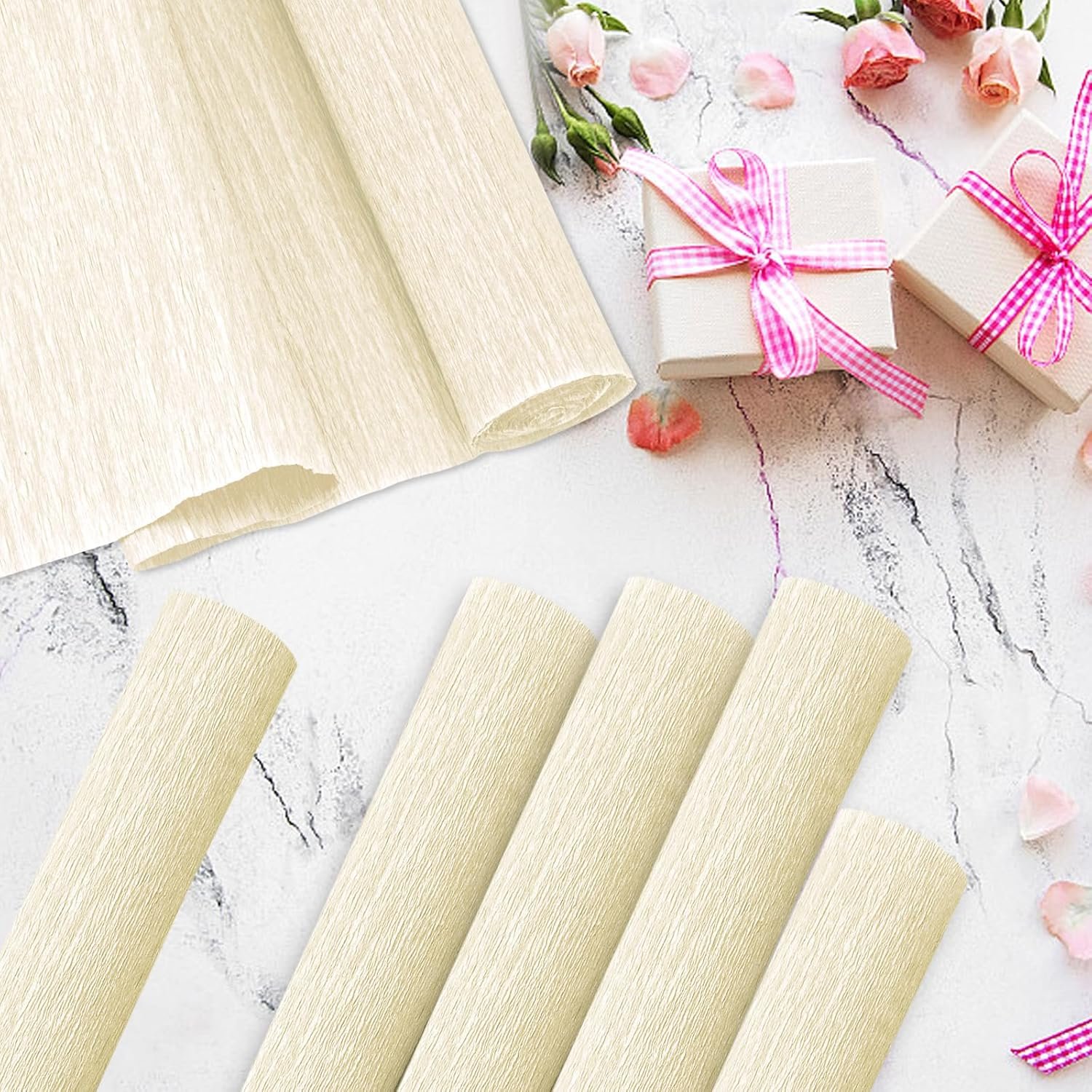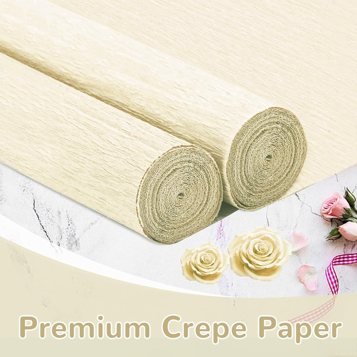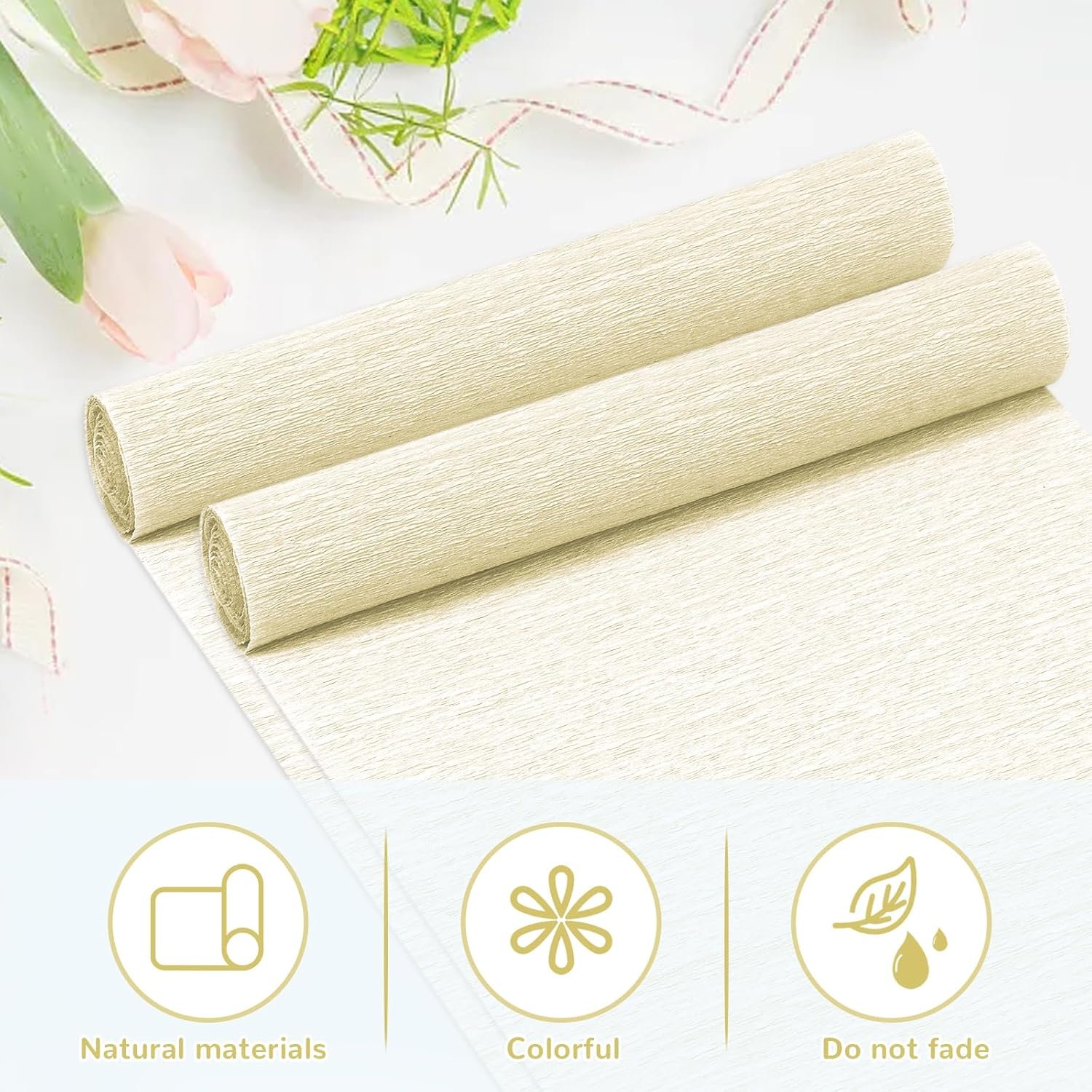 Crepe Paper Streamers 2 Rolls, 10 x 98Inch Crepe Paper Sheets for DIY Gift Colourful Paper Flower Wrapping Paper Crafts Birthday Wedding Holiday Party Decorations (Ivory)