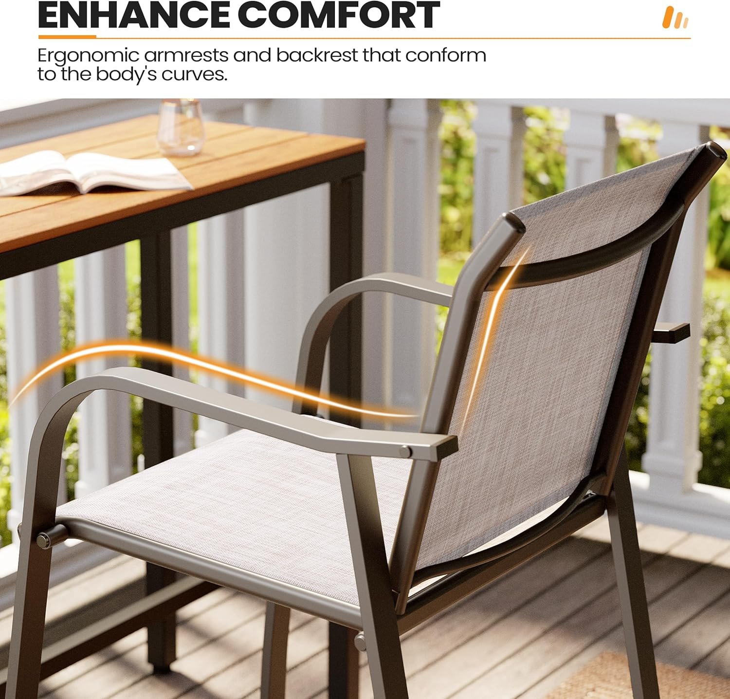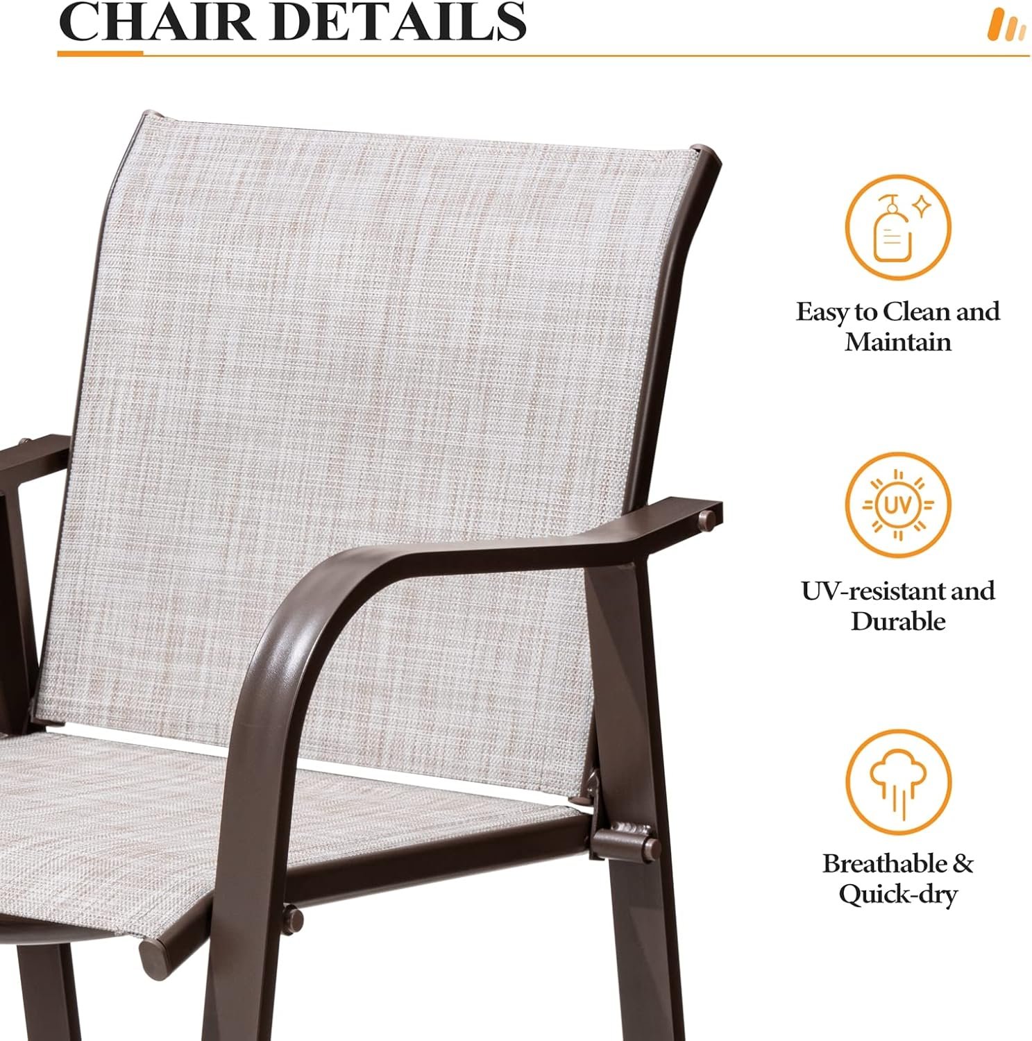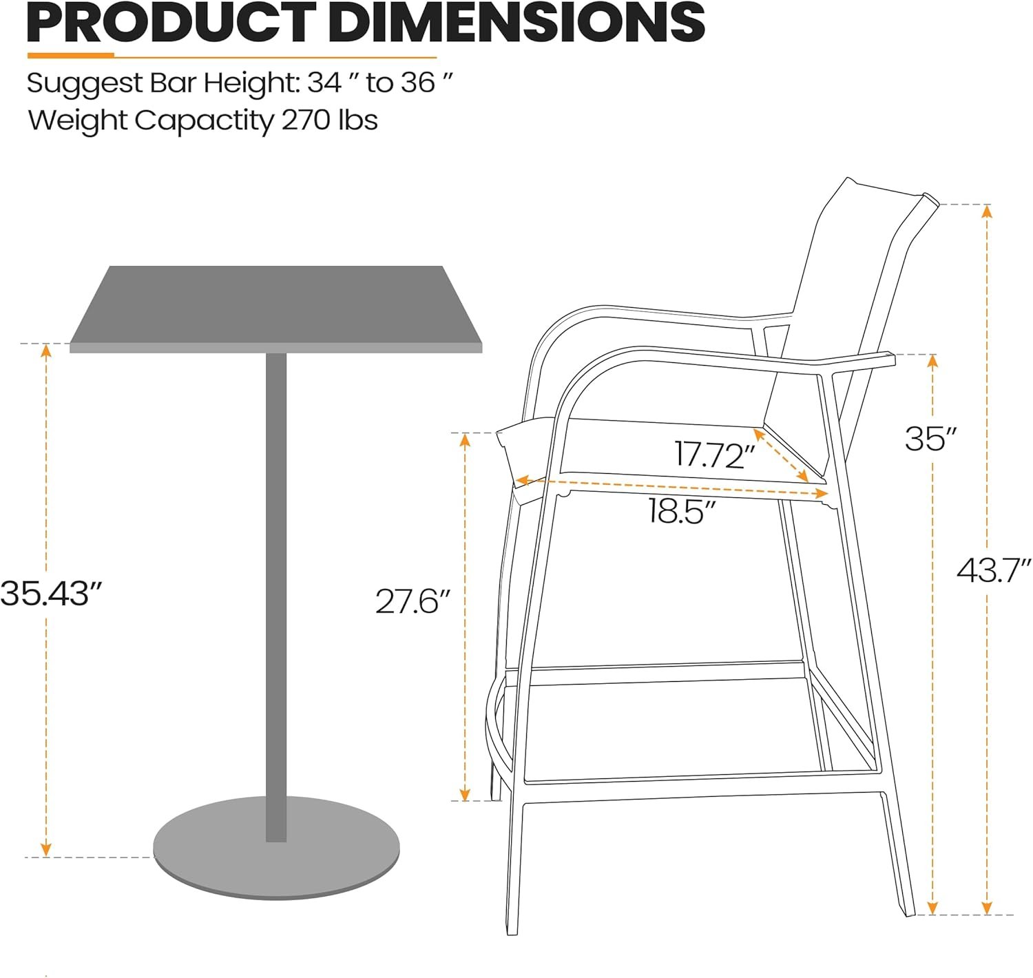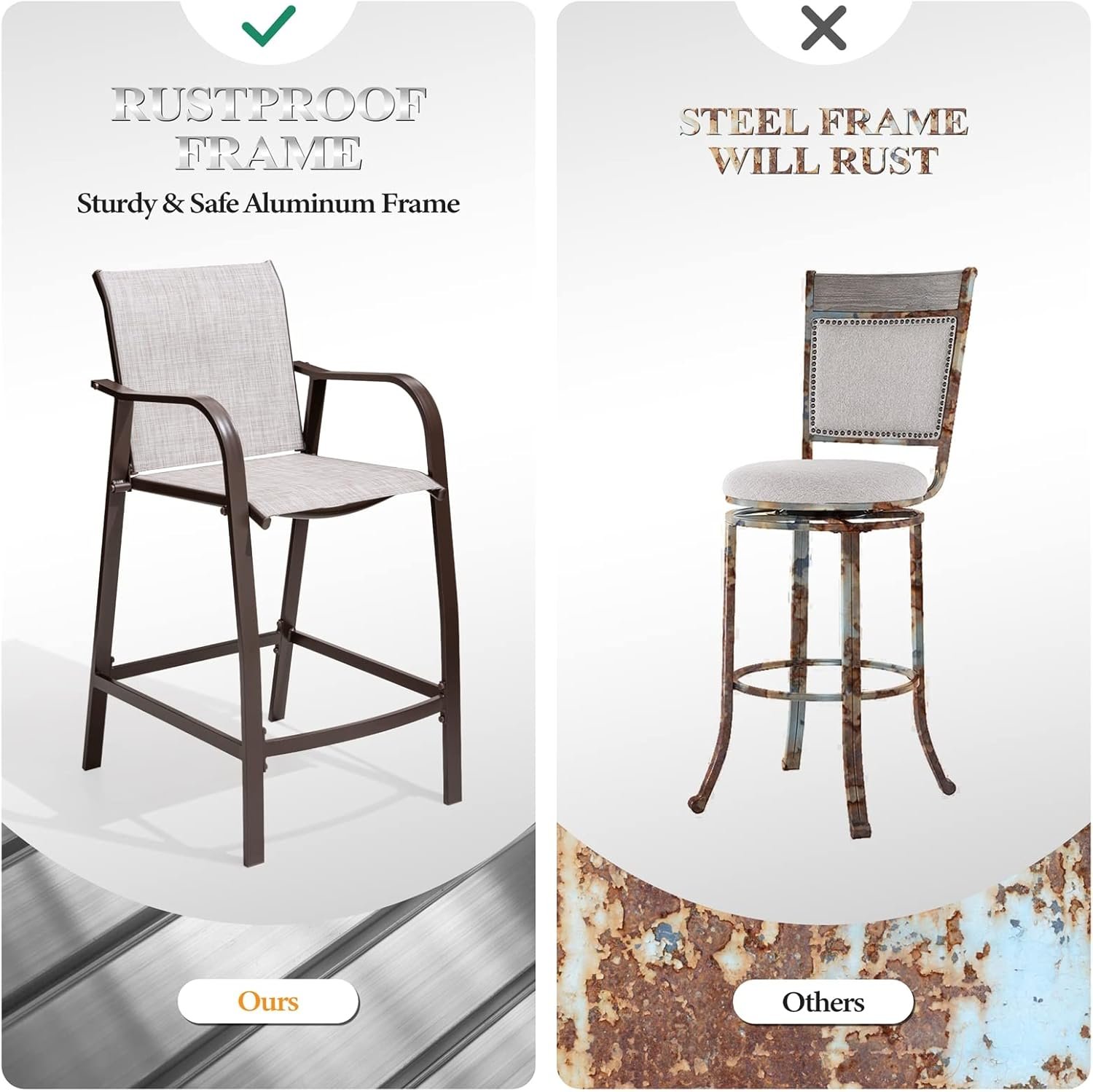 This 2PCS barstool set is built from aluminum frame with durable, weather-resistant, UV resistant and quick-dry textilene fabric for years of use. You can leave them outside and only easy wipe needed.