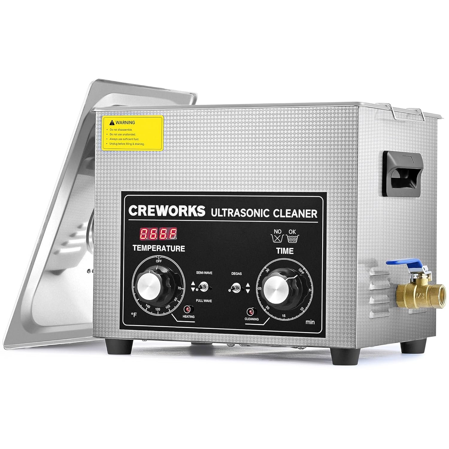 The Solution to Stubborn Grime: This 10L ultrasonic cleaner machine by Creworks features 240W of power, a heater, a timer, toggle switches, and adjustment knobs for easy operation, making heavy duty auto & machine parts or delicate retainers & dentures look as good as new.